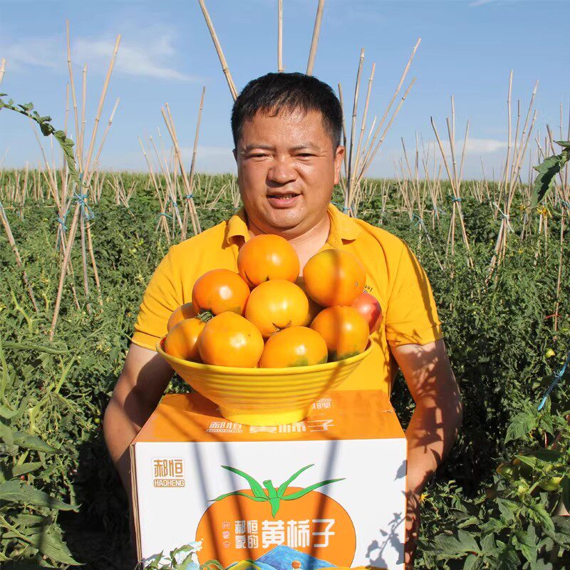 内蒙古五原黄柿子新鲜现摘沙瓤自然熟黄色西红柿水果番茄生吃蔬菜
