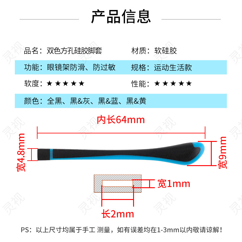 眼镜腿套防过敏防磨耳朵套固定脚套眼睛腿套柔软扁口方孔专用防滑