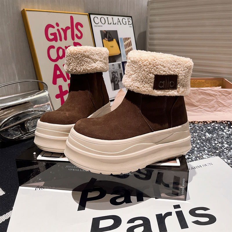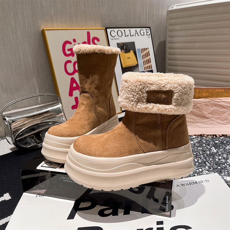 欧货毛毛鞋翻边厚底松糕雪地靴女2025新款加绒保暖棉鞋面包鞋防水