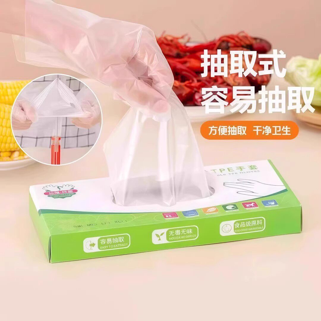 盒装TPE一次性手套耐用加厚抽取式食品用透明餐饮防水厨房用手套