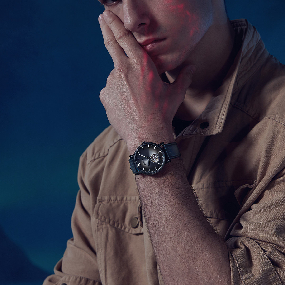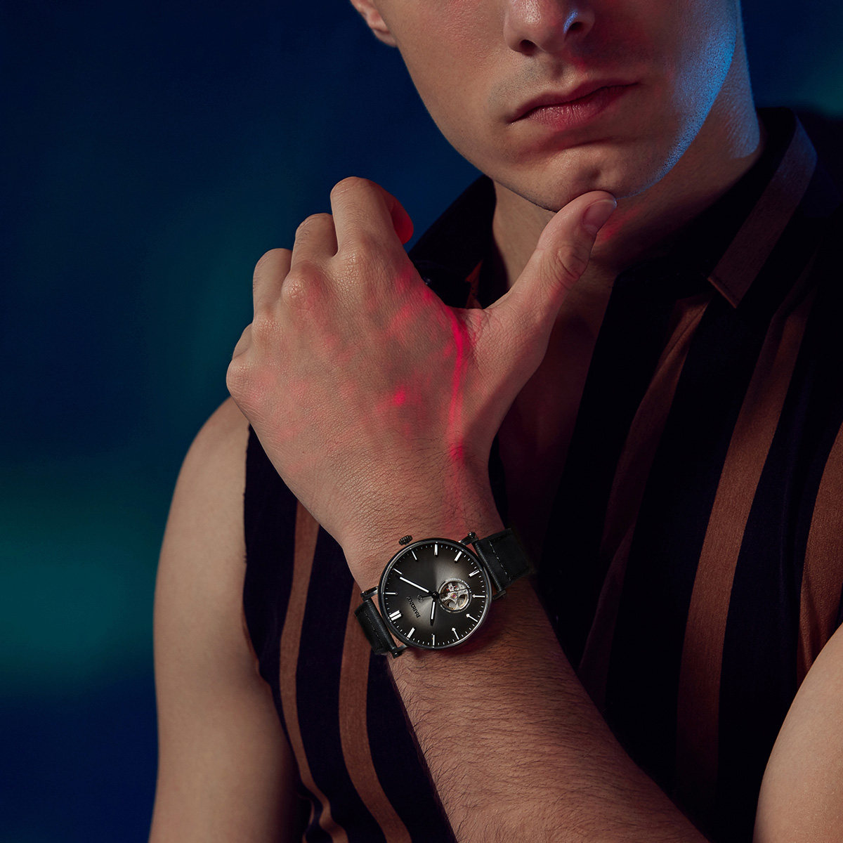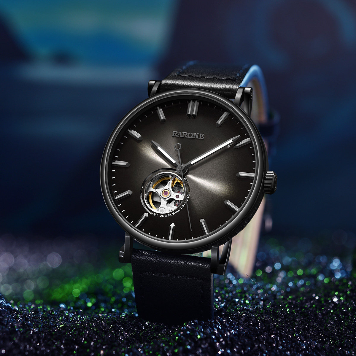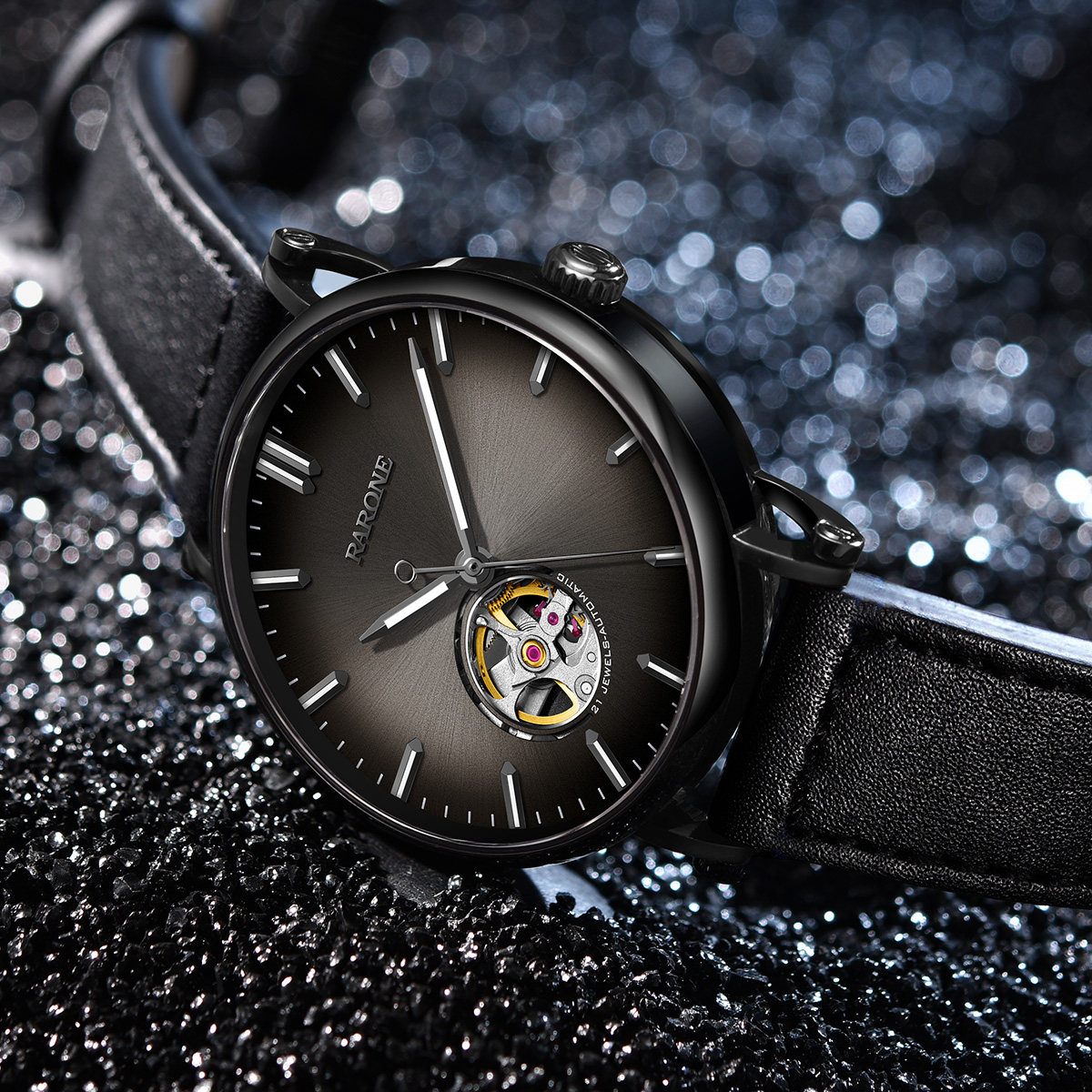 情人节礼物丨Rarone雷诺黑骑士手表男款镂空自动机械腕表时尚名牌