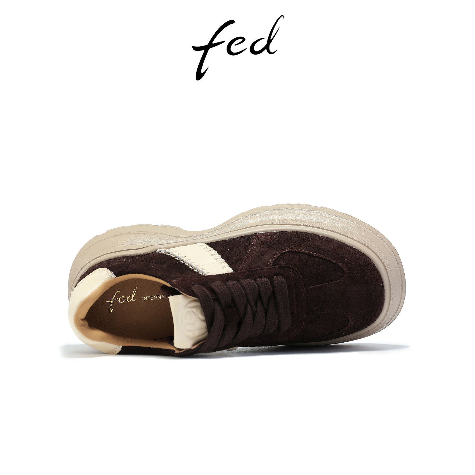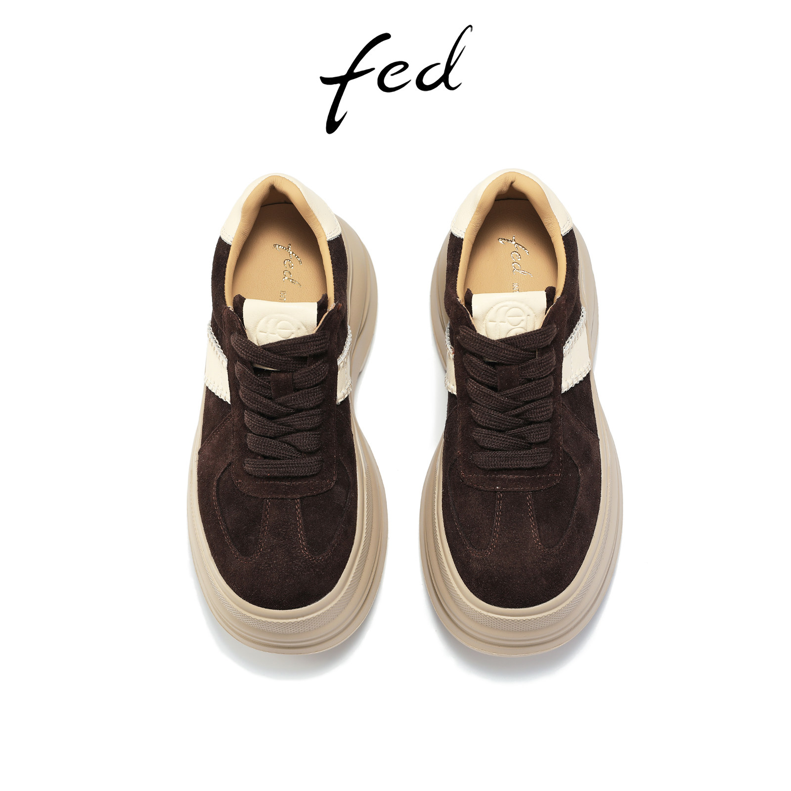 fed真皮德训鞋冬季新款女鞋松糕底休闲鞋增高厚底鞋女S0911-ZC355