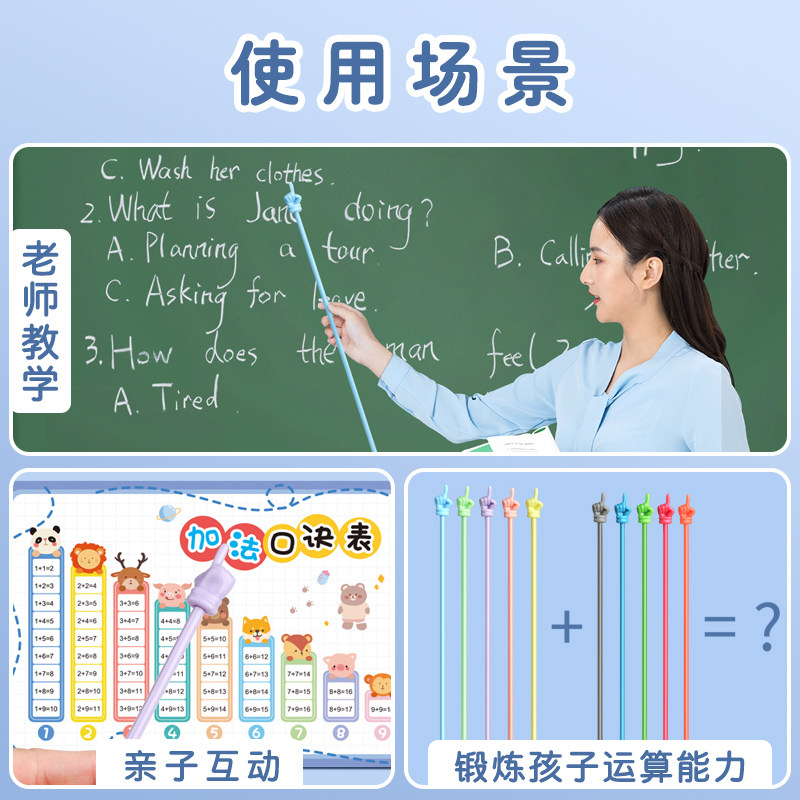 马卡龙色系儿童阅读绘本指读棒硅胶加粗读书手指棒树脂教具教鞭早教教师专用上课指挥棒学习棒教棒点读小手指
