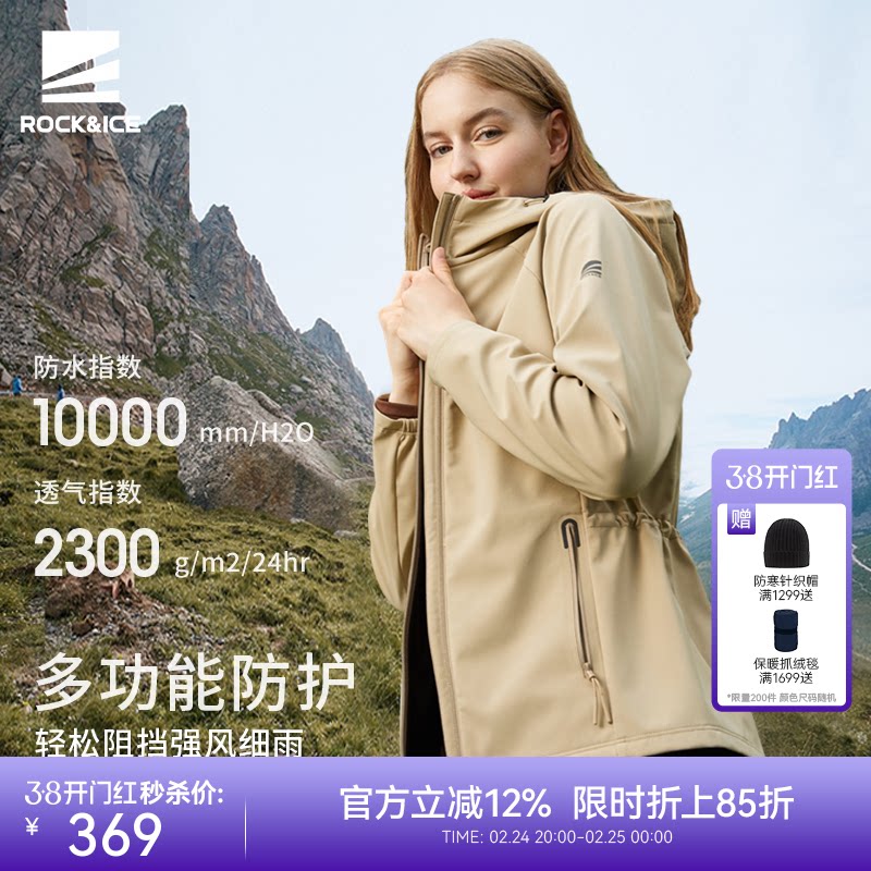 ROCKICE户外软壳衣女款防风保暖收腰外套冲锋衣内胆休闲登山夹克