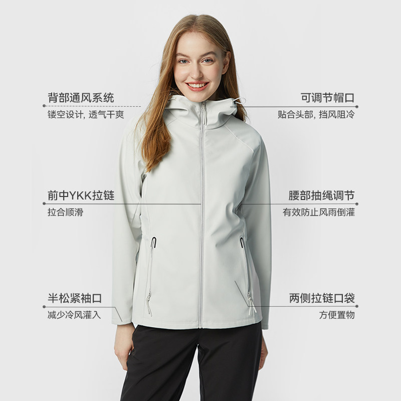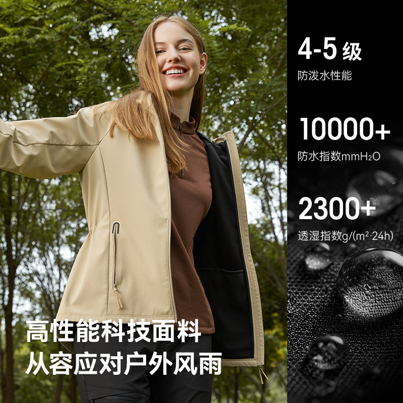 【风盾收腰款】伯希和户外软壳衣女春季新款防风保暖修身风衣外套