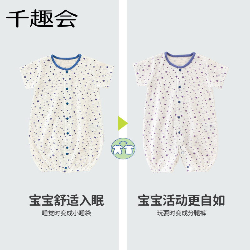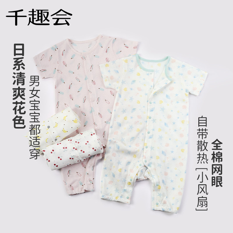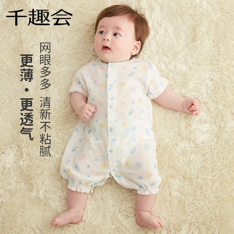 千趣会婴儿衣服男女宝宝夏装短袖连体衣全棉网眼透气爬服包屁衣