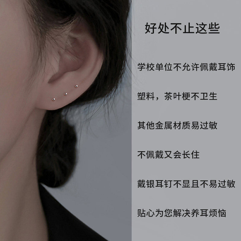 999足银银养耳洞耳钉2025年新款爆款耳骨钉睡觉免摘耳环小众耳饰