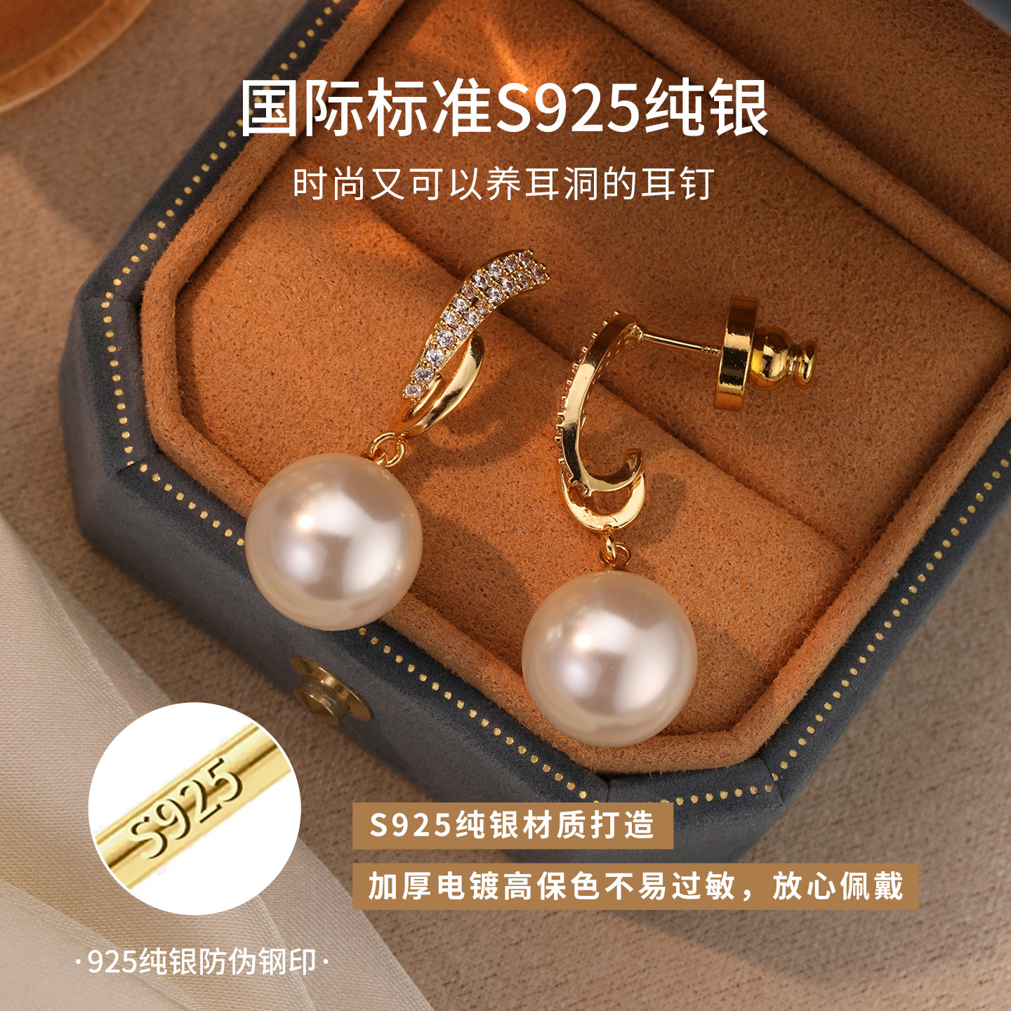 珍珠耳钉耳坠刘亦菲同款天然母贝女款2025新款纯银高级感轻奢耳环