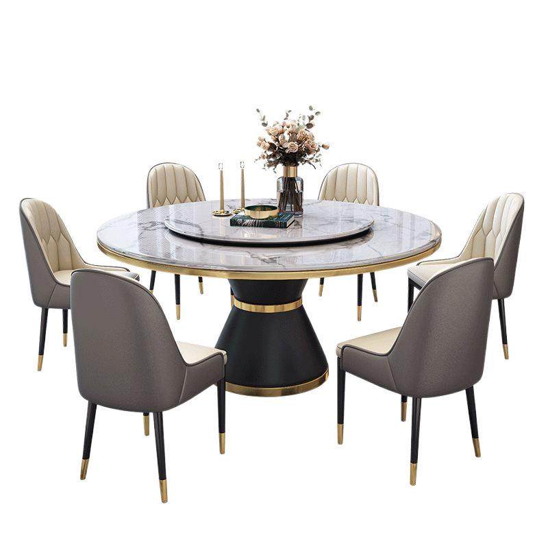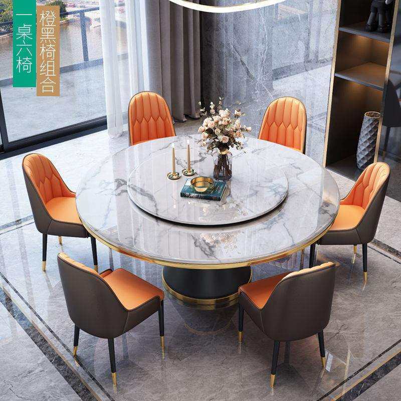 现代简约岩板小户型带转盘餐厅饭桌轻奢大理石餐桌椅组合酒店圆桌