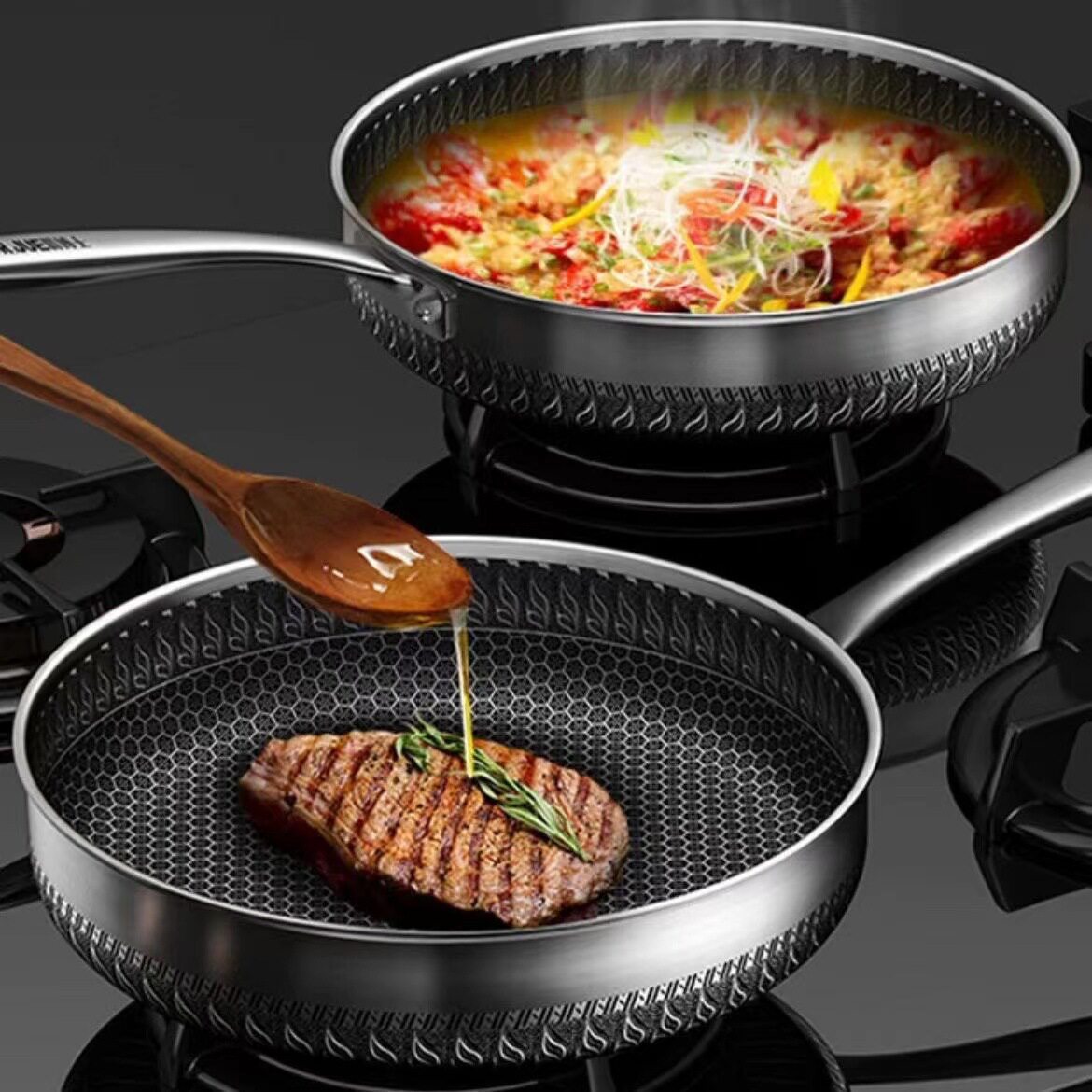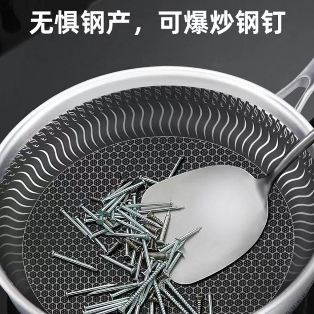 304不锈钢平底锅不粘锅家用煎蛋牛排煎锅烙饼锅电磁炉燃气灶通用