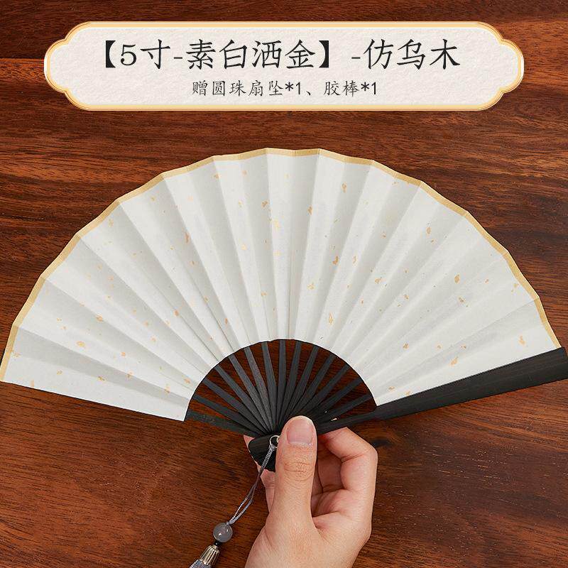 4-6寸小扇子迷你折扇带流苏玉竹男女随身折叠扇空白宣纸绘画扇diy