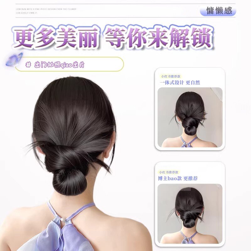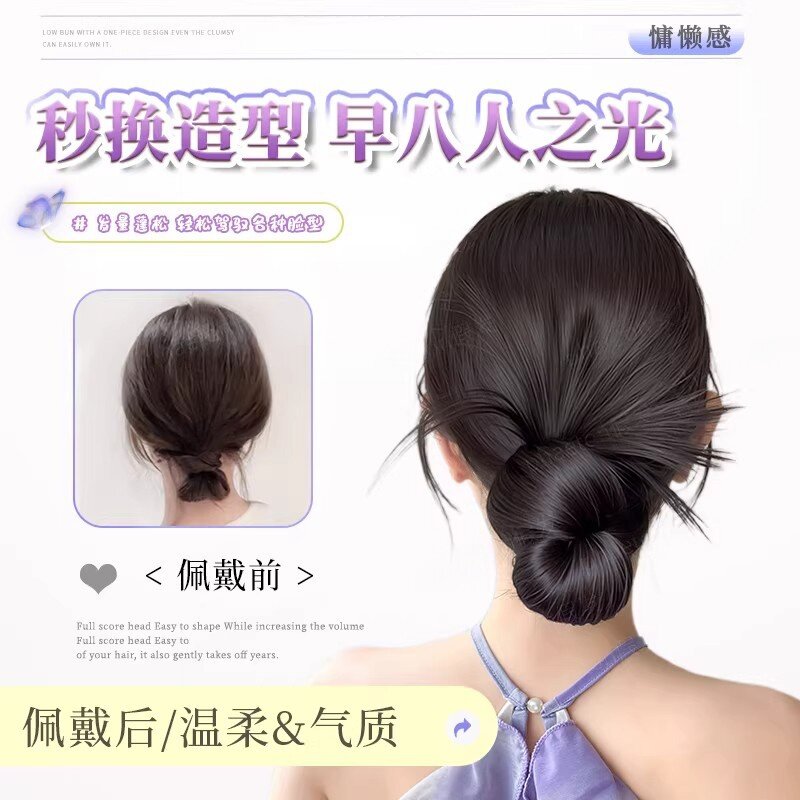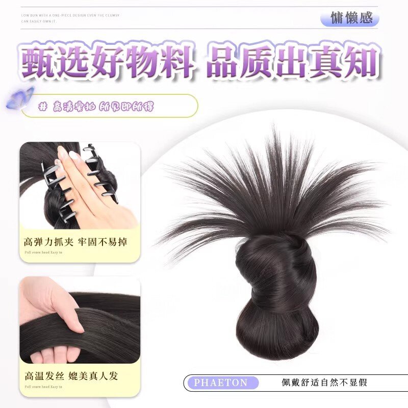 低扎丸子头假发鸡毛头抓夹盘发发包慵懒感造型头饰自然蓬松后脑勺