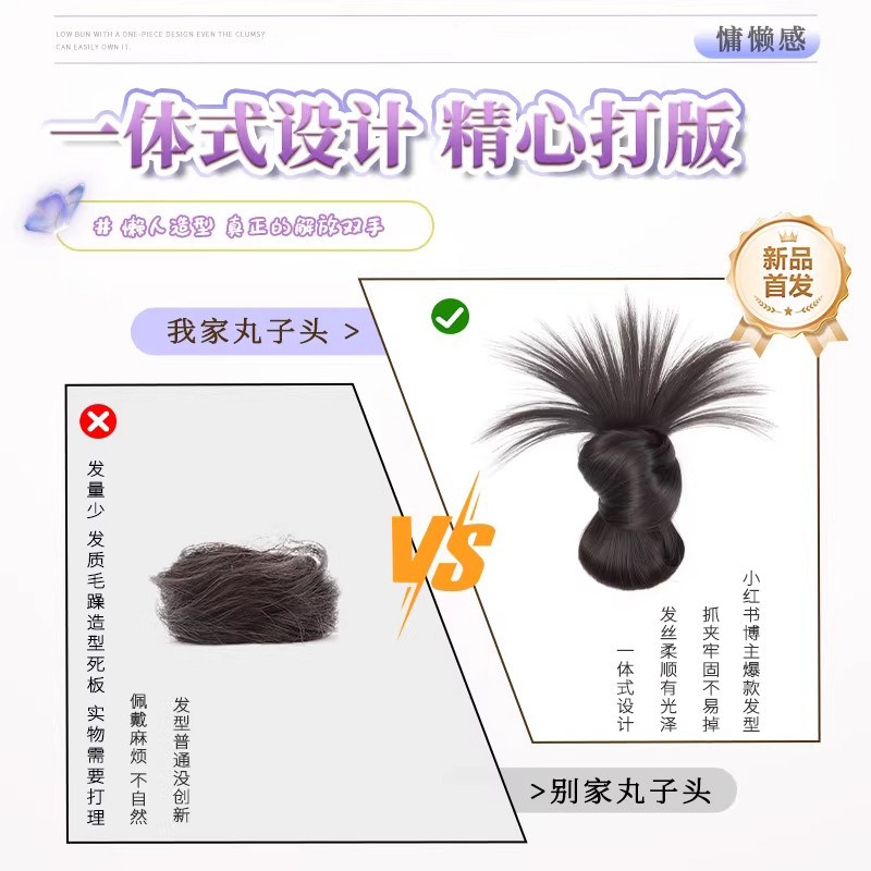 丸子头假发女慵懒感鸡毛头抓夹低盘发发包造型蓬松后脑勺假发发圈
