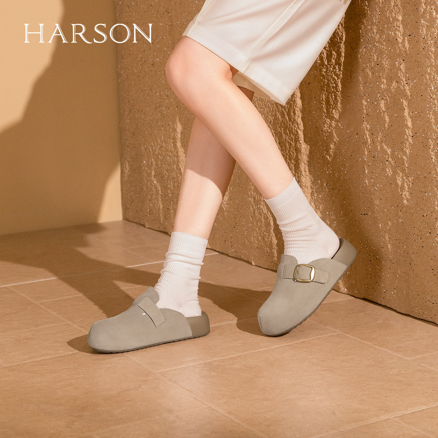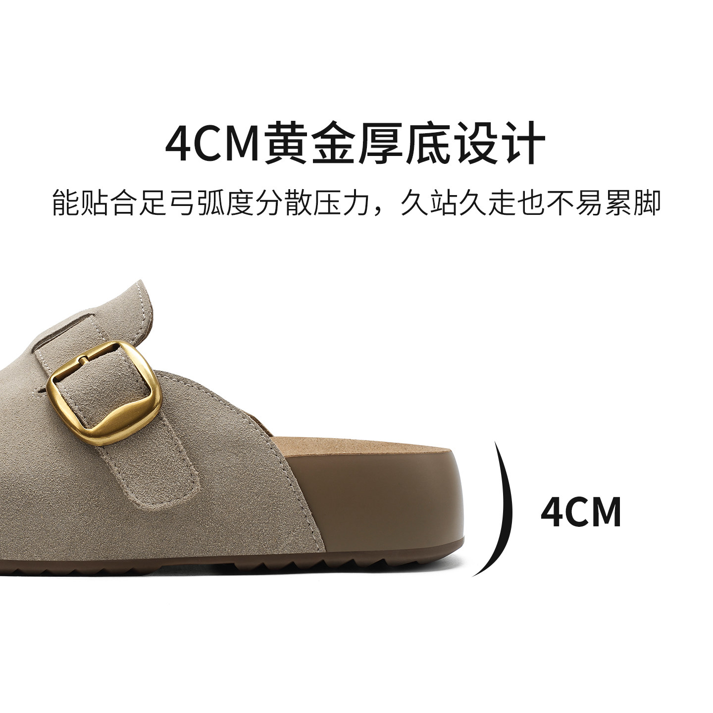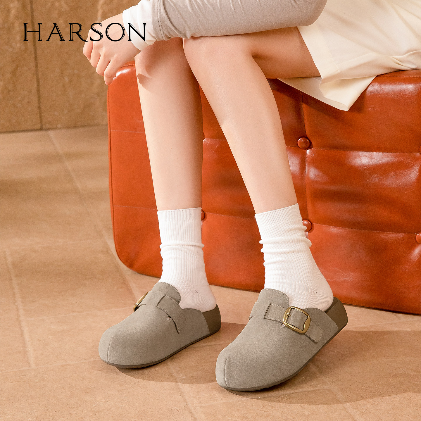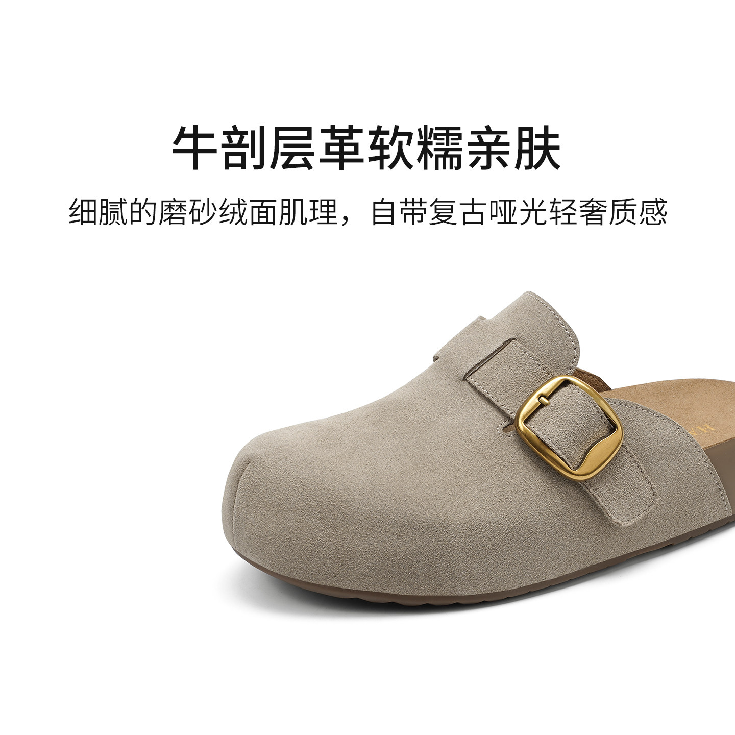 哈森2026夏新款圆头厚底勃肯拖鞋百搭通勤一脚蹬包头拖鞋HM261405