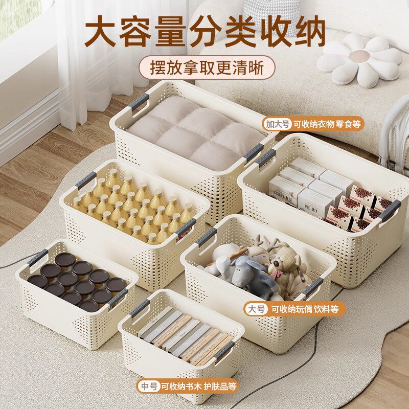 杂物收纳筐零食玩具整理箱家用塑料储物盒厨房橱柜篮子桌面置物筐
