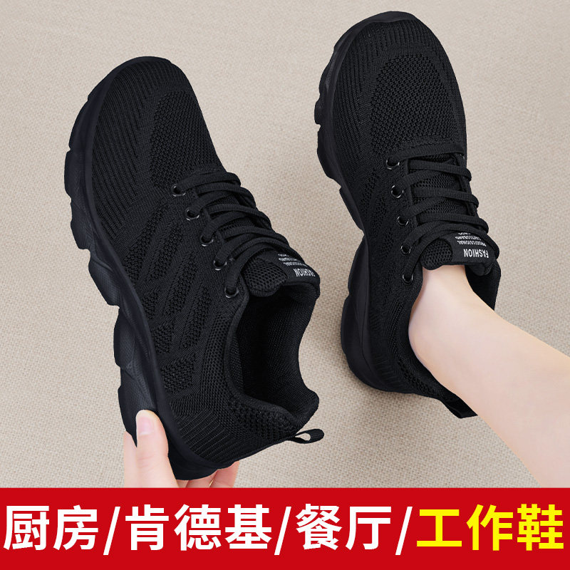 厨房防滑鞋女2026新款不累脚黑工作鞋休闲软底舒适上班运动妈妈鞋