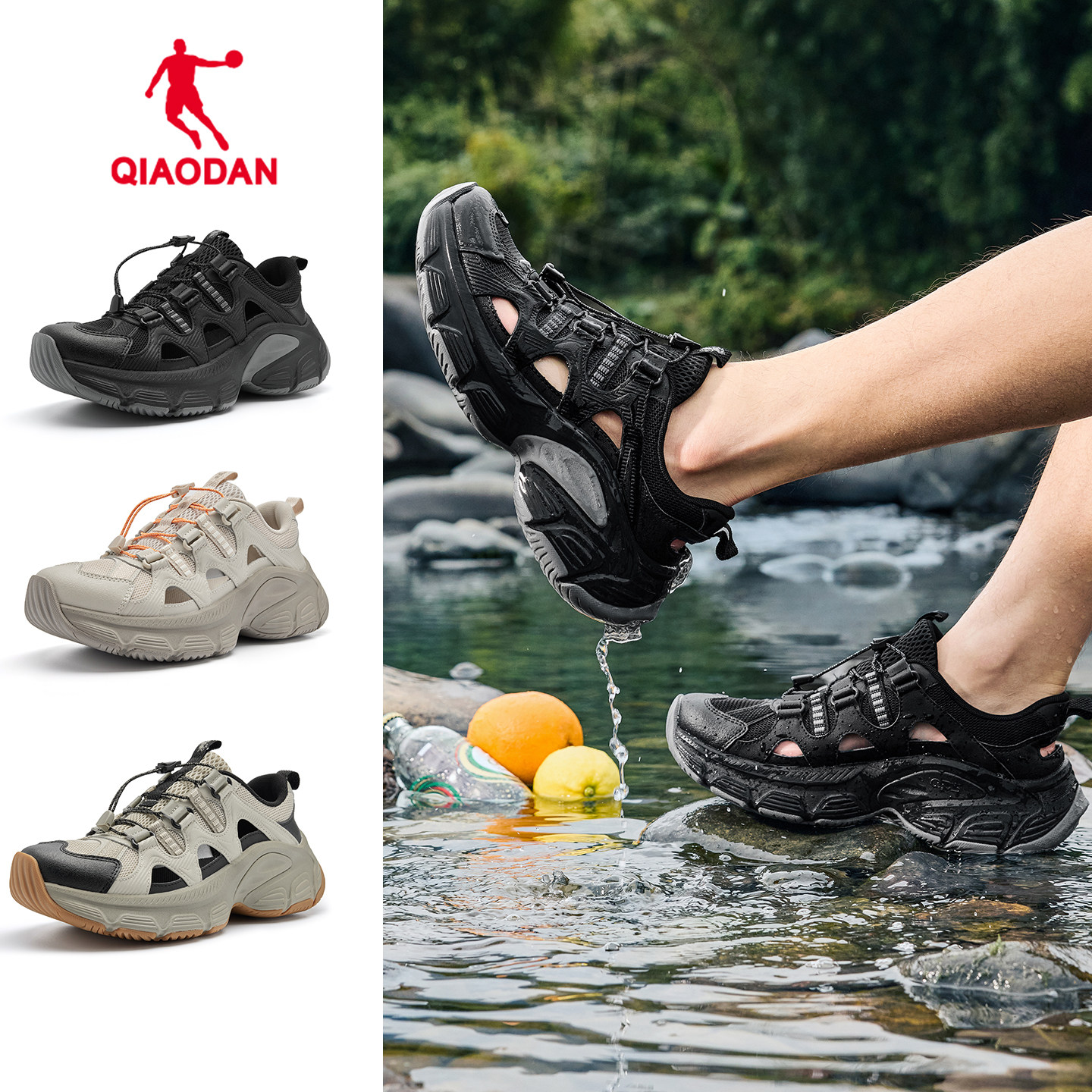 乔丹户外防滑溯溪鞋男士2026夏季新款黑色涉水镂空透气休闲运动鞋