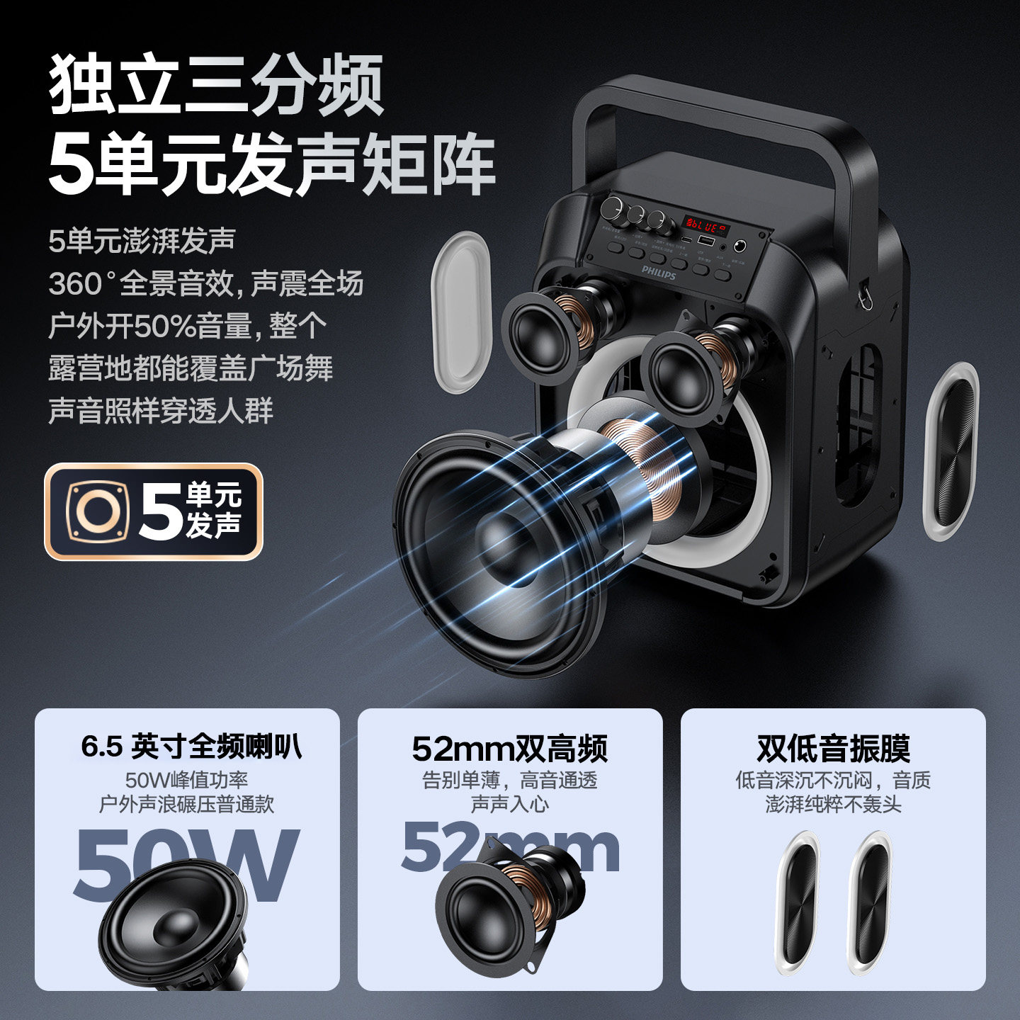 飞利浦SD110户外音广场舞手提音响蓝牙音箱低音炮演出收款扩音器