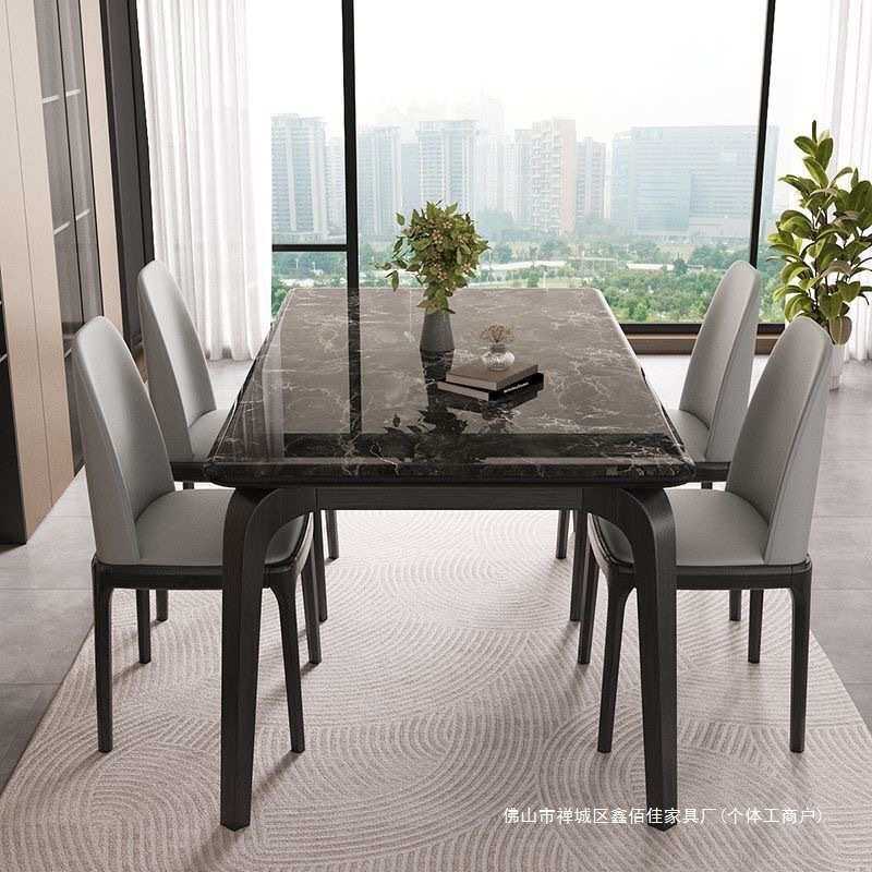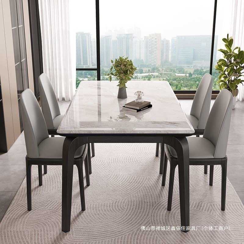 天然超晶石实木餐桌椅组合微晶石北欧现代简约家用高端大理石餐台
