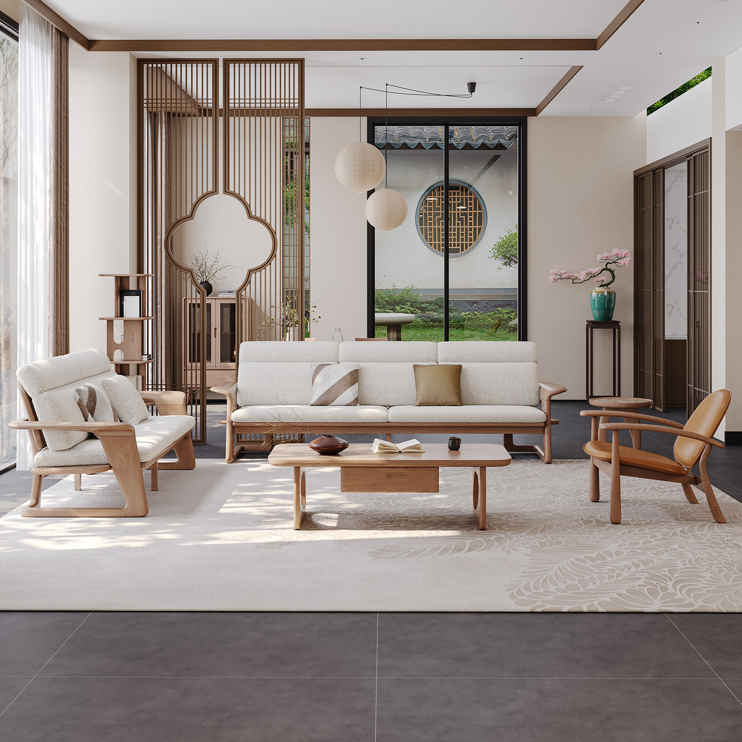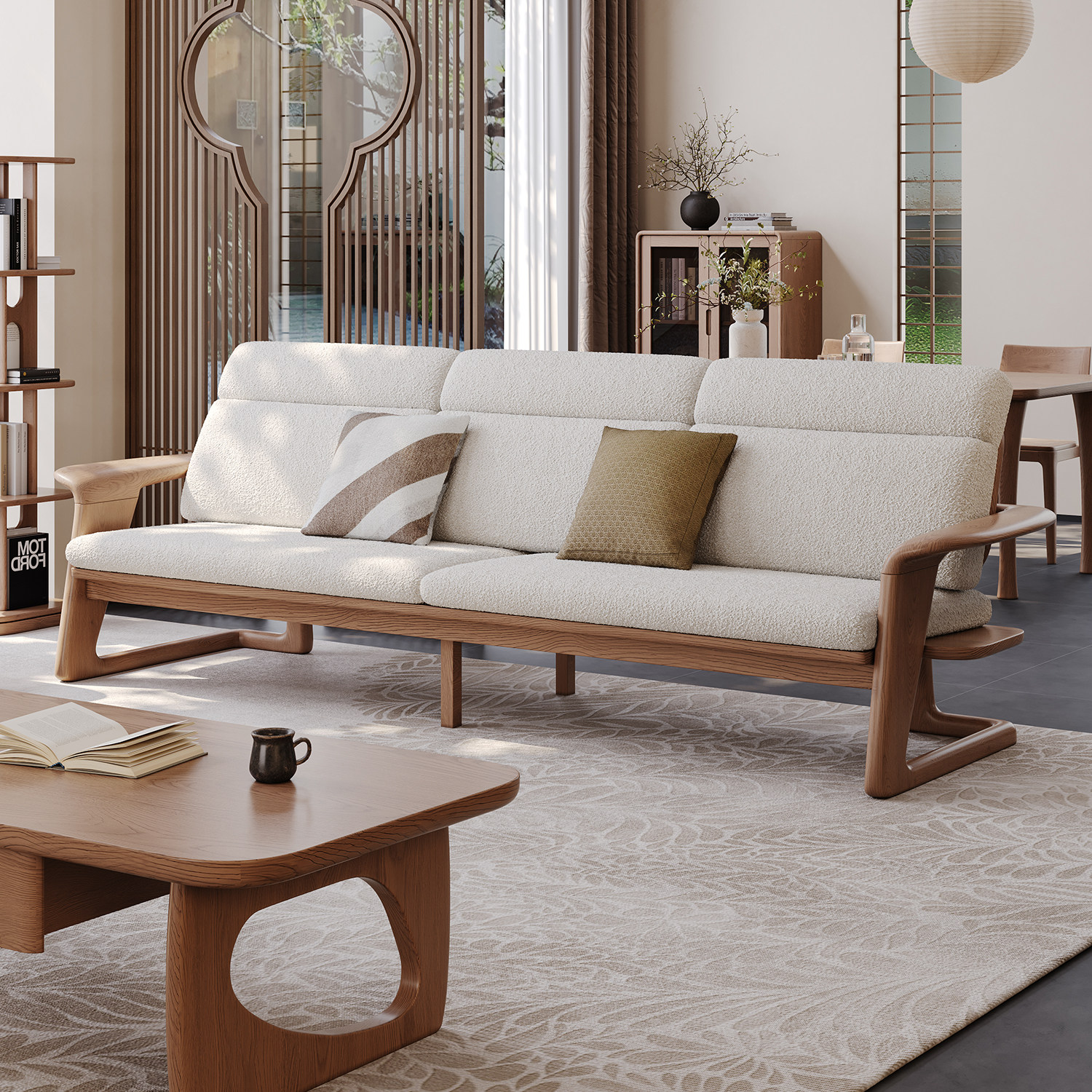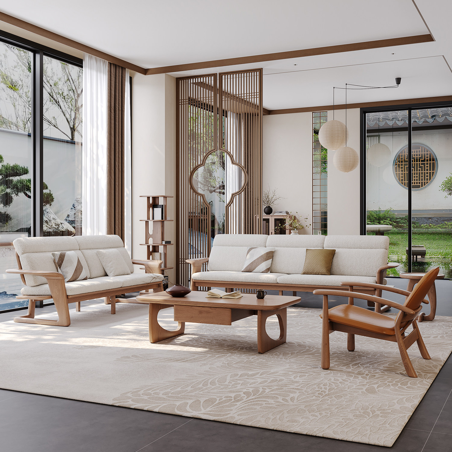 新中式全实木沙发客厅2026新款三人位北欧简约现代小户型直排沙发