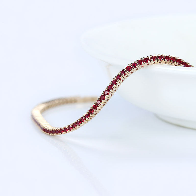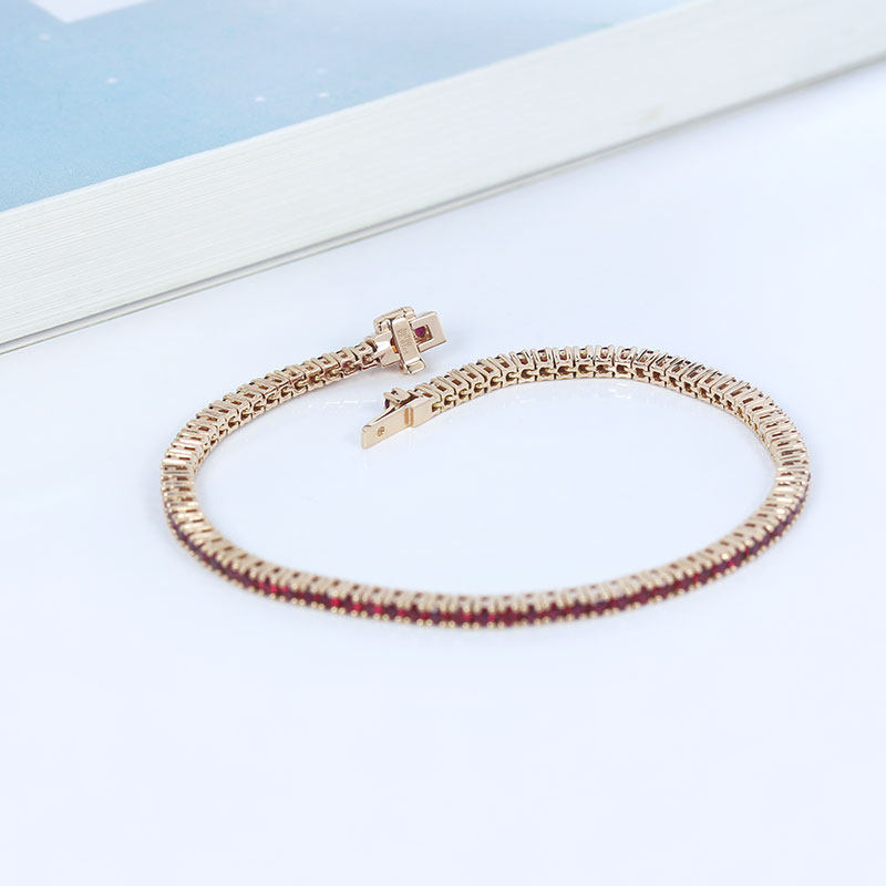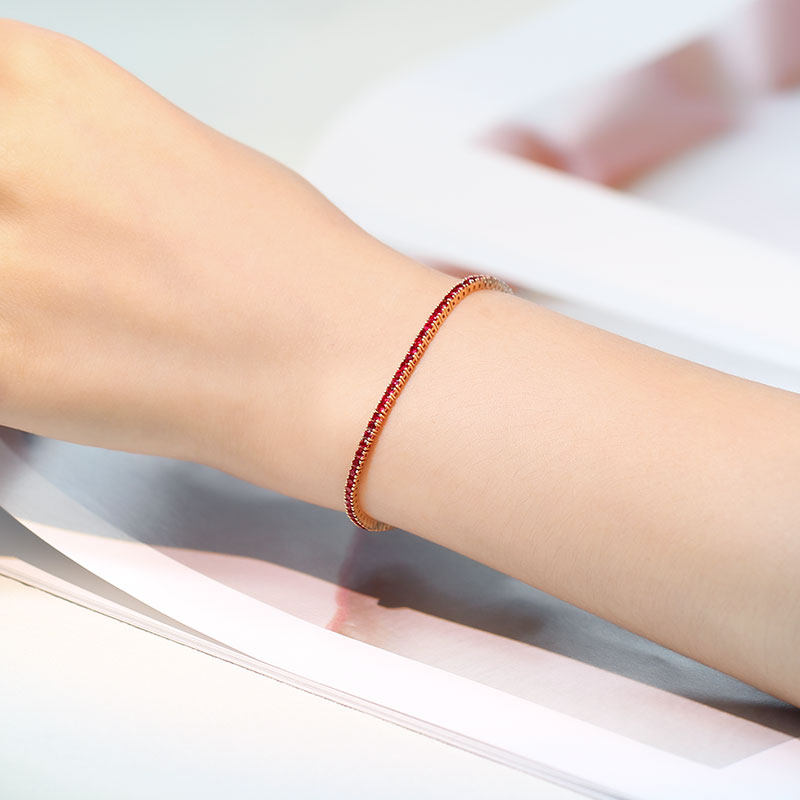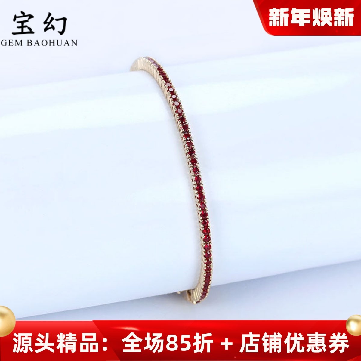 满圈18K玫瑰金天然鸽血红宝石软蛇骨手链 不翻转红绳手镯手环男女