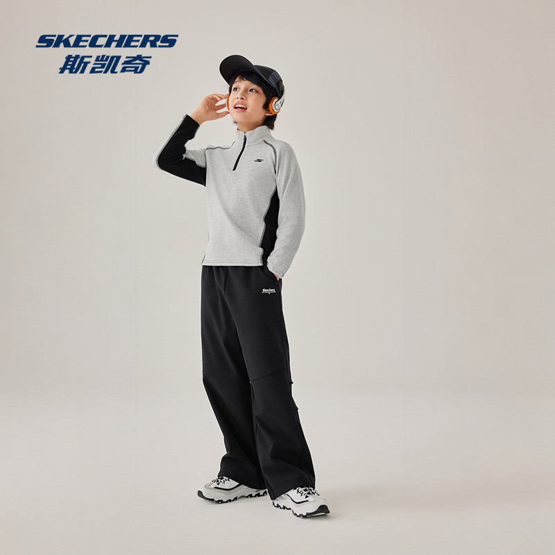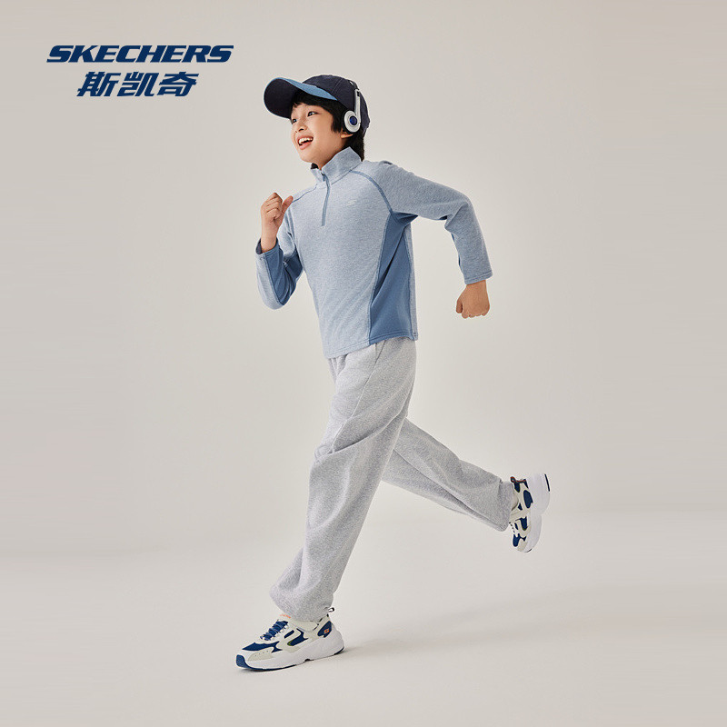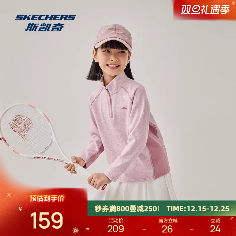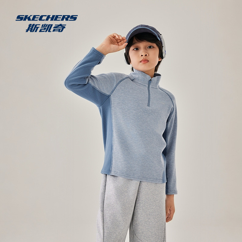 斯凯奇童装亲子装卫衣绒衫2025冬季男女通用针织半开胸长袖恤衫