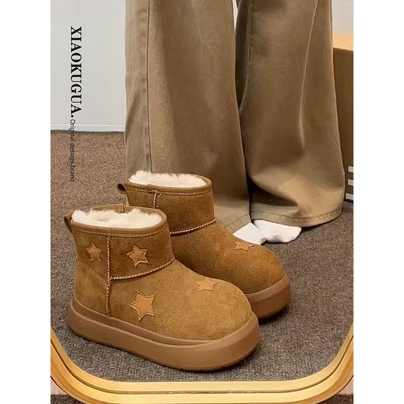 油叽叽~真皮羊毛雪地靴女冬季加绒加厚保暖棉靴厚底增高短筒靴子