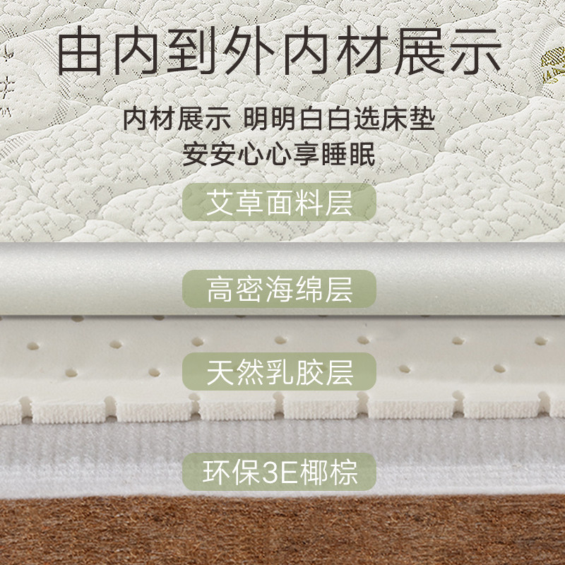 艾草纤维天然椰棕床垫偏硬护脊抗菌助睡眠1.5米1.8m床尺寸可定制