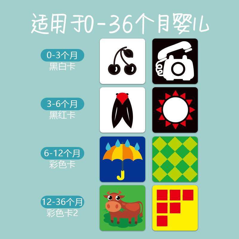 黑白卡新生儿早教彩色卡片婴儿视觉激发色卡宝宝追视安抚益智玩具
