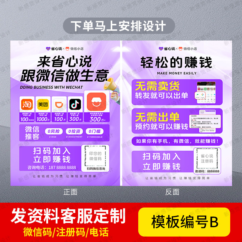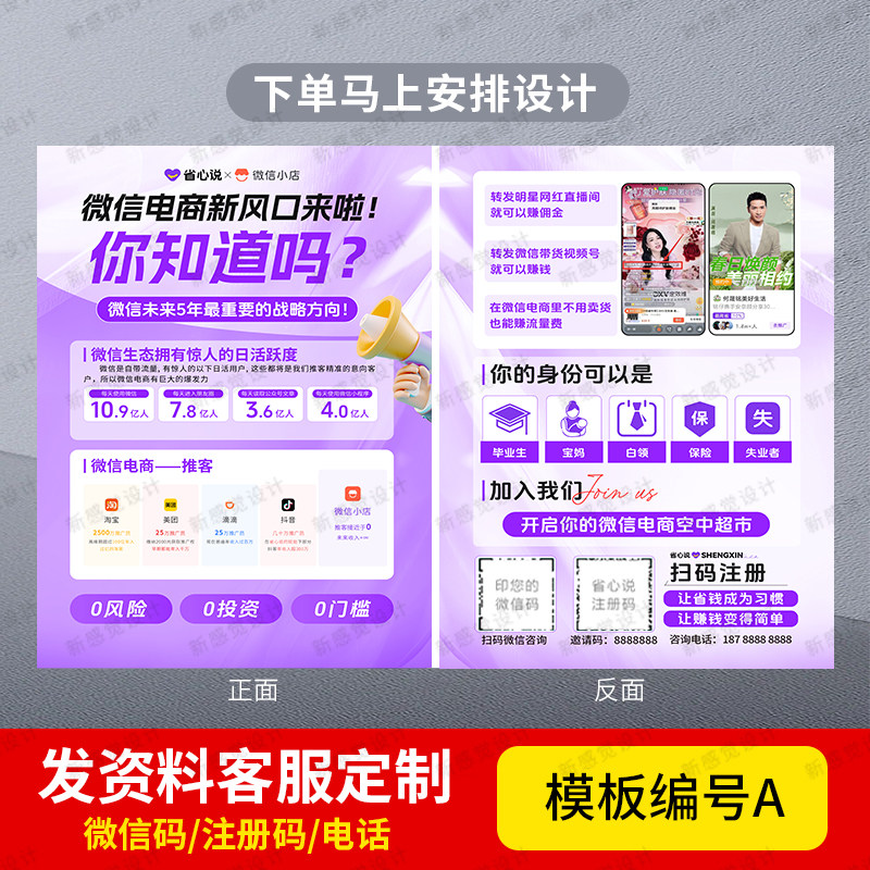 省心说微信小店宣传单定制印刷易拉宝广告牌地推海报dma4彩页名片