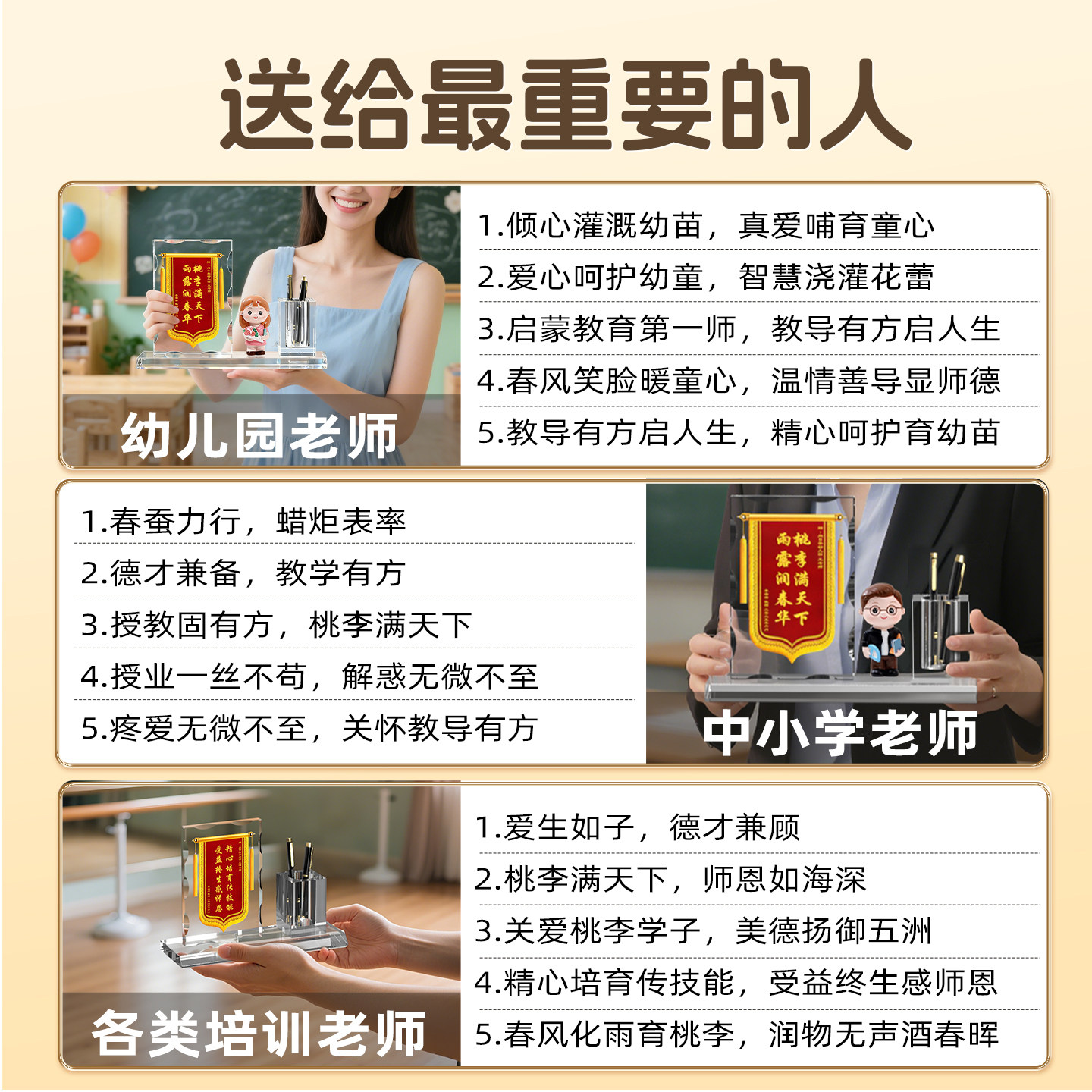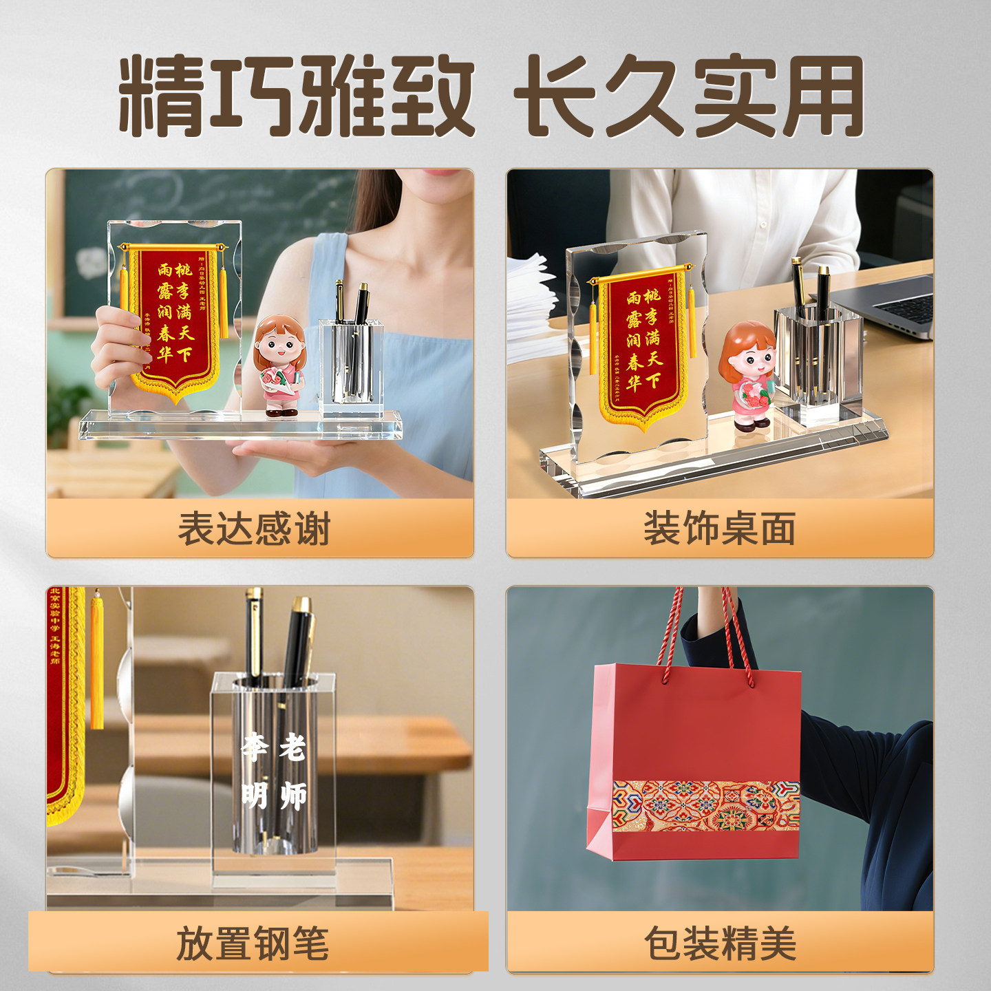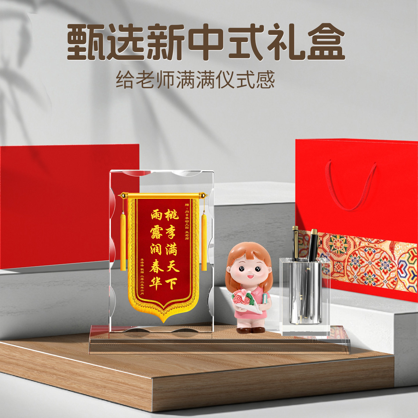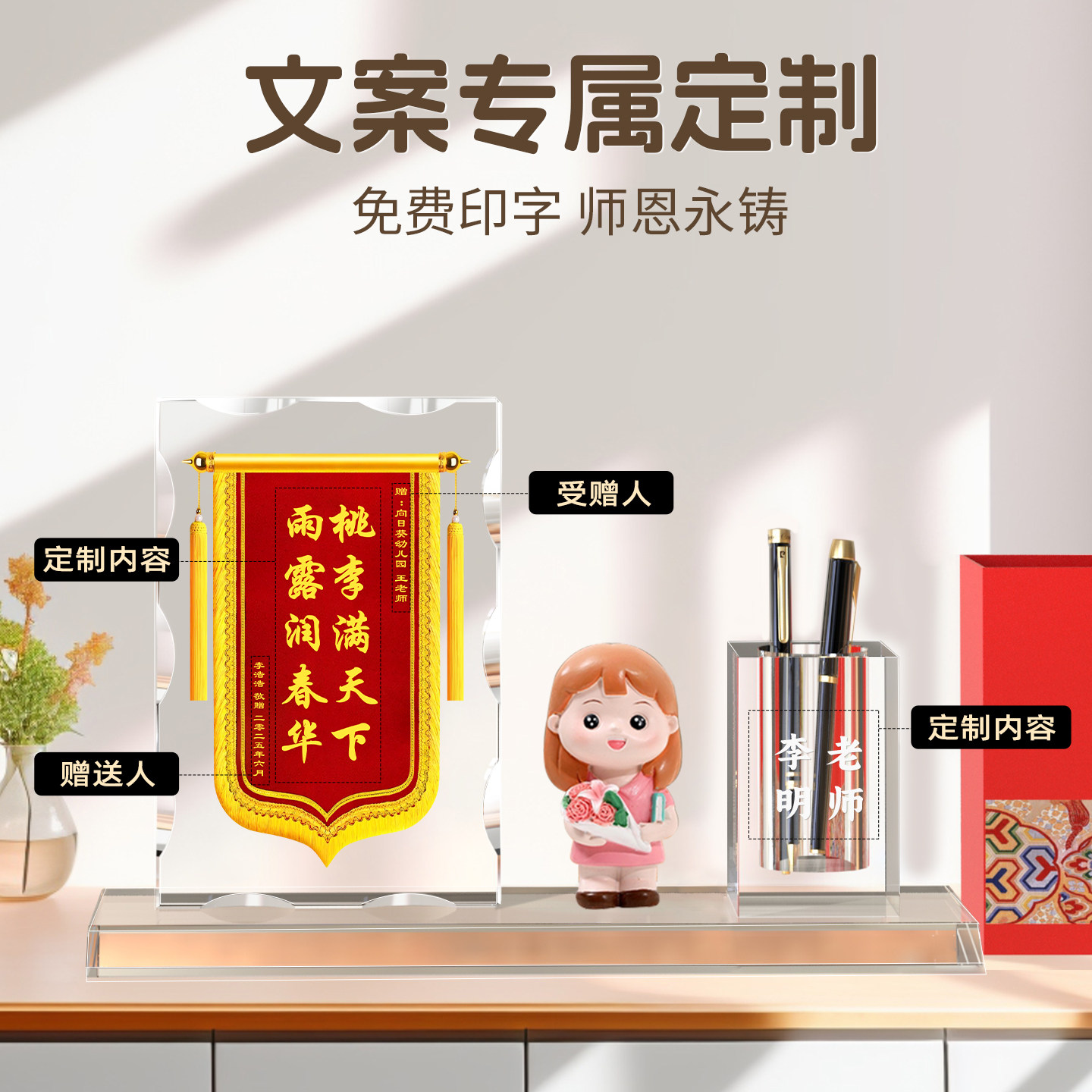 锦旗定制感谢幼儿园老师中小学校班主任学校培训机构旌旗定做送医生护士医护人员月嫂教师节礼物水晶笔筒摆件
