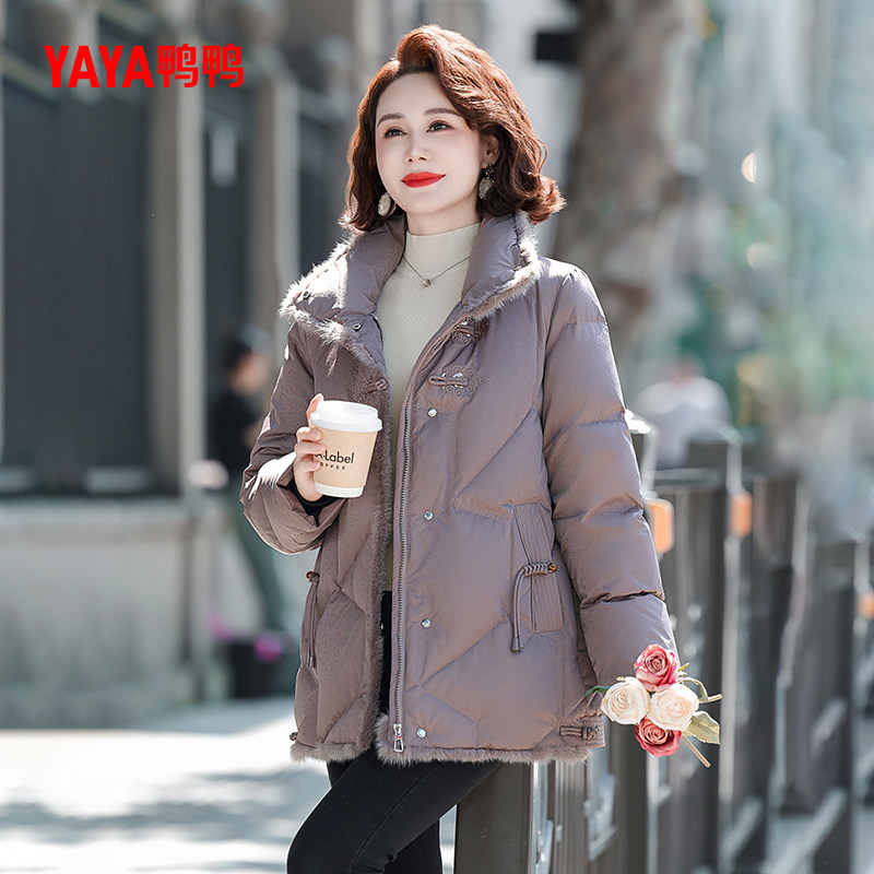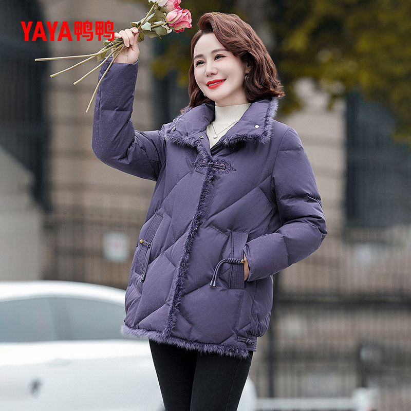 YAYA鸭鸭中年妈妈冬装洋气短款羽绒服2025新中年女款中老年外套女