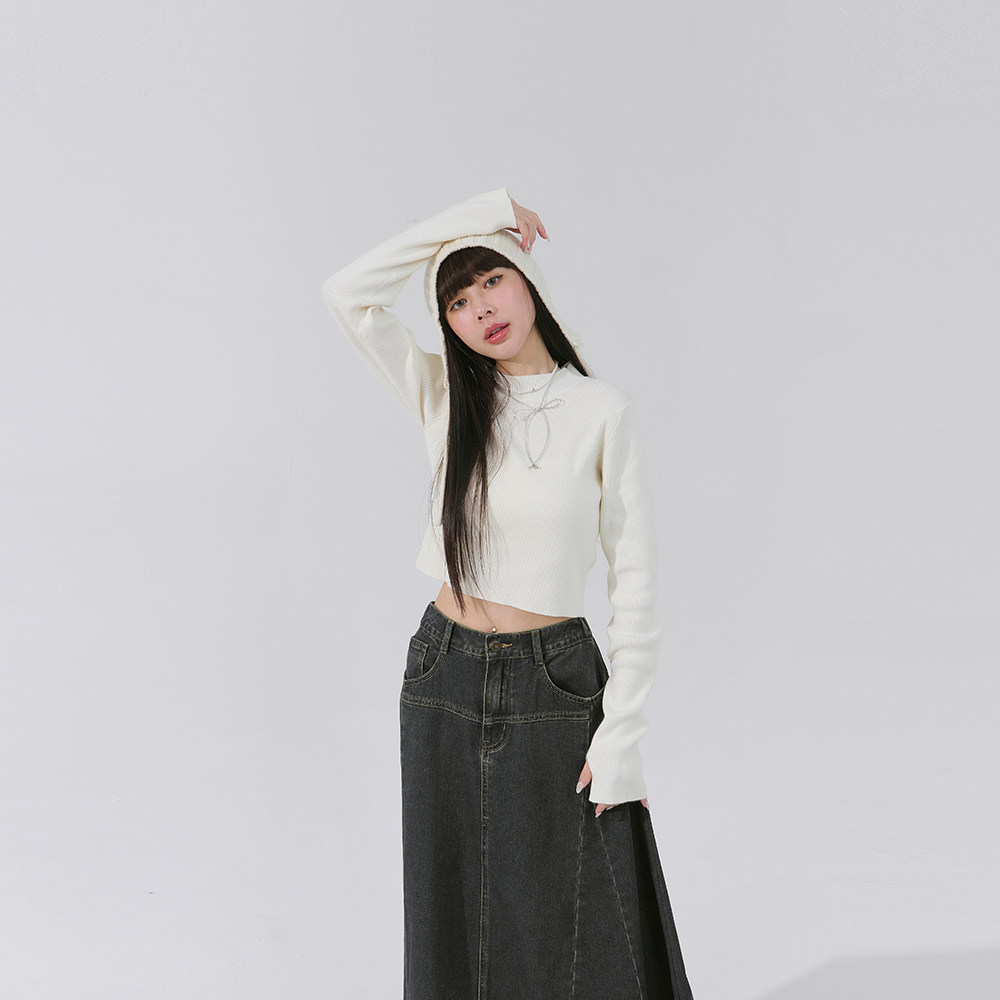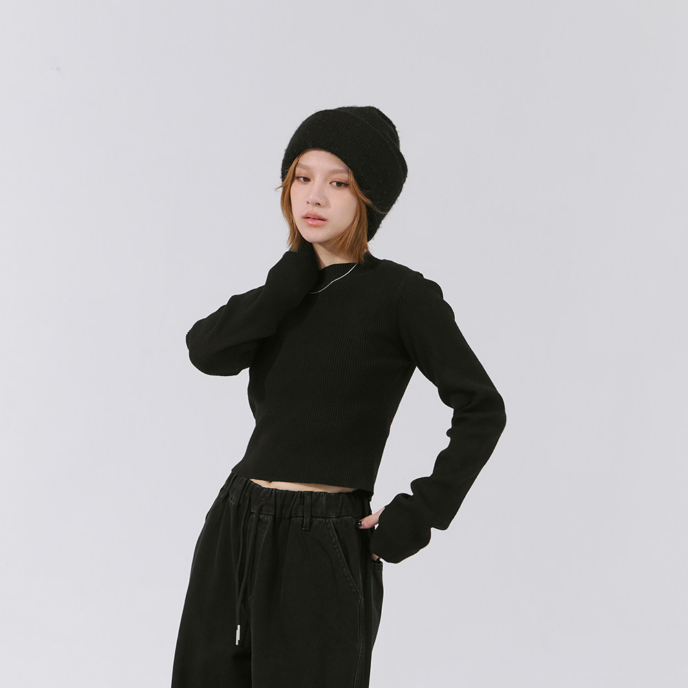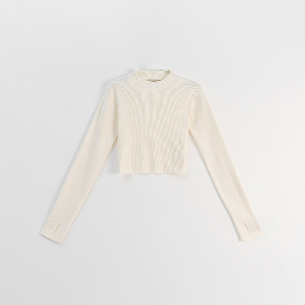QUEENSHOP 2025秋冬新品女装微高领指洞造型针织合身上衣01099425