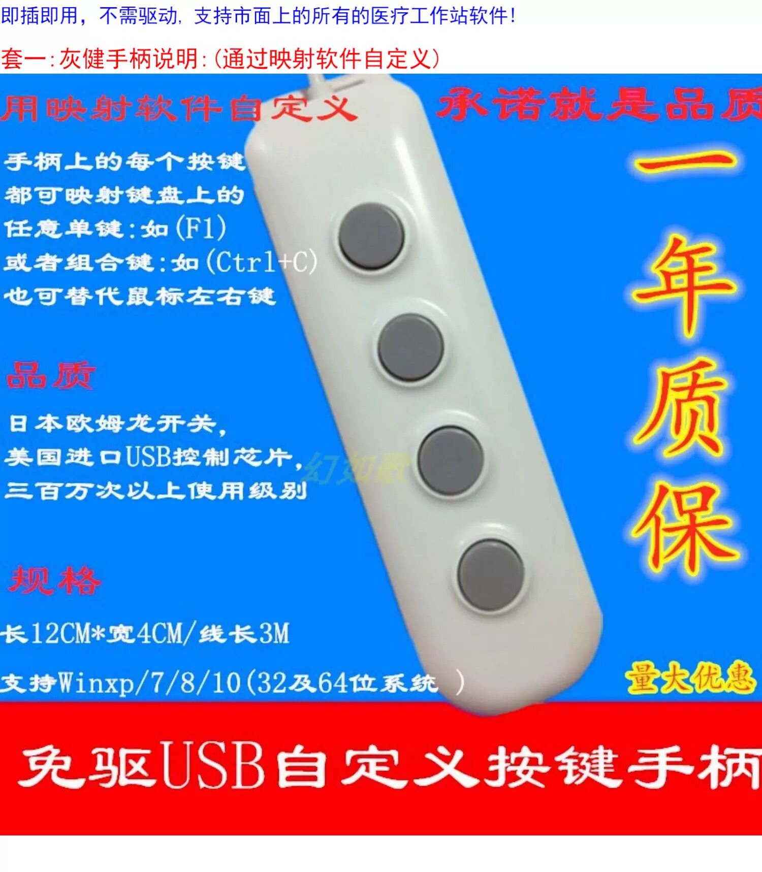 USB四键手柄采集器 医疗超声手柄B超采图开关图像采集 自定义键值