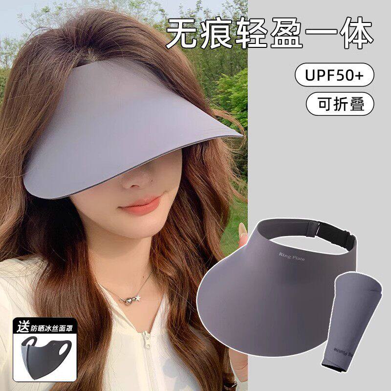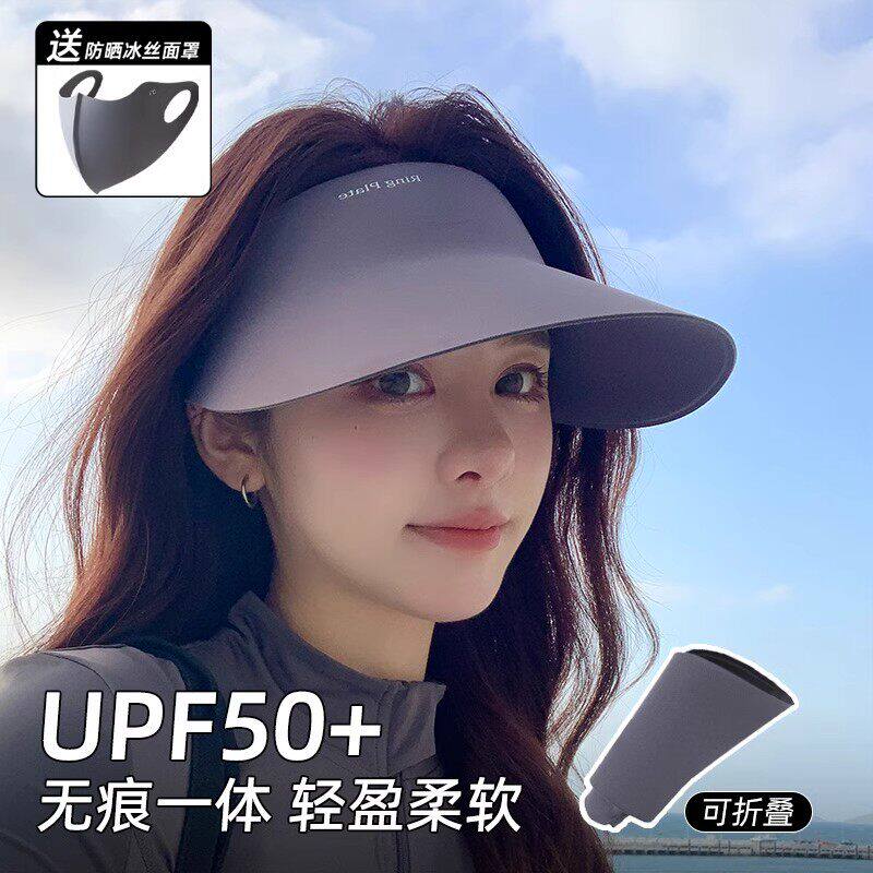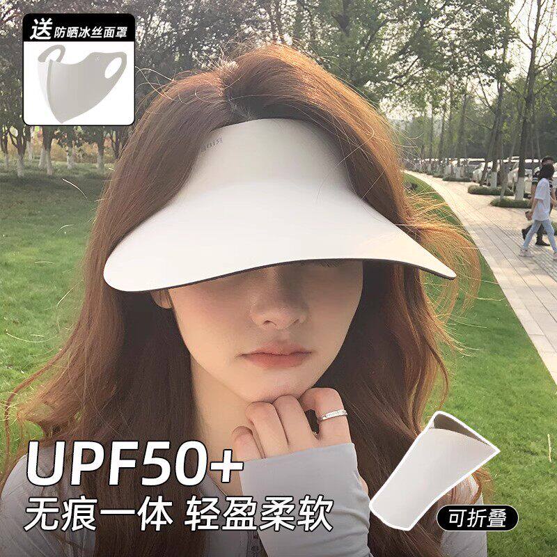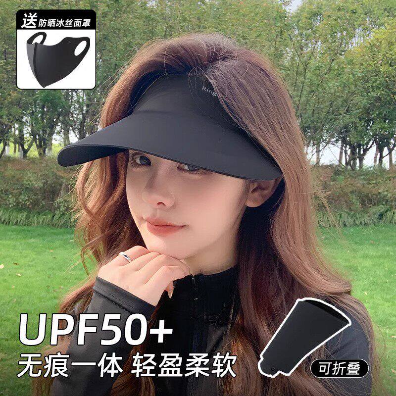 无痕一体帽子女防晒夏季运动空顶帽可折叠骑行不翻防紫外线遮阳帽