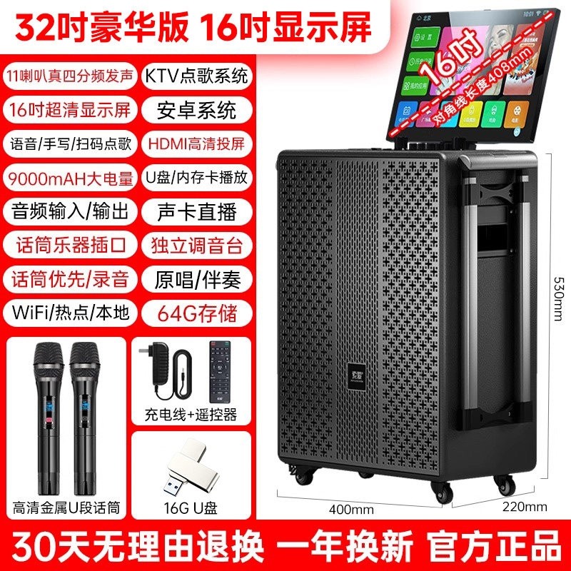 索爱广场舞音响带显示屏户外点唱套装点歌机k歌一体机家庭ktv音箱
