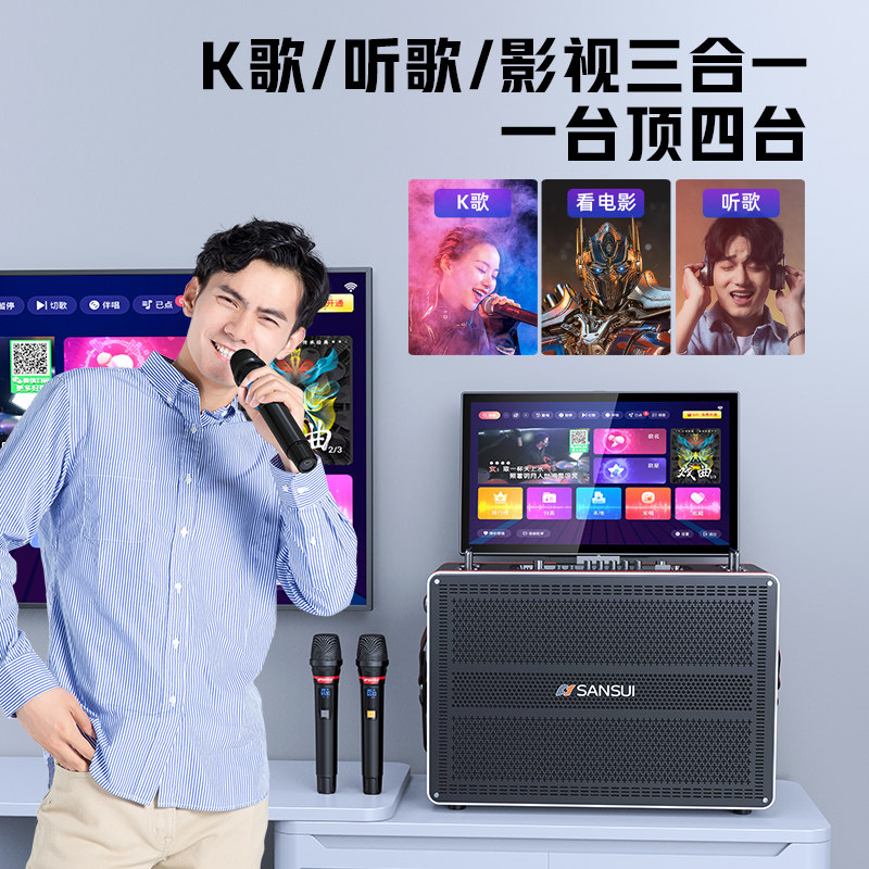 山水E81广场舞音响带显示屏户外K歌音响家庭KTV套装卡拉OK一体机
