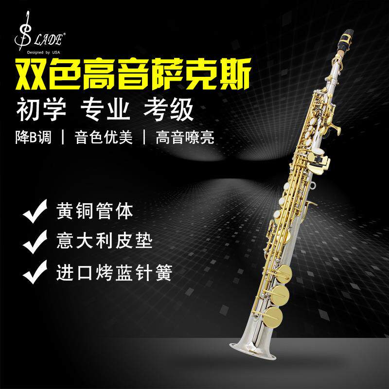 SLADE高音萨克斯降B调直管专业演奏雕花白贝壳银色金键萨克斯风