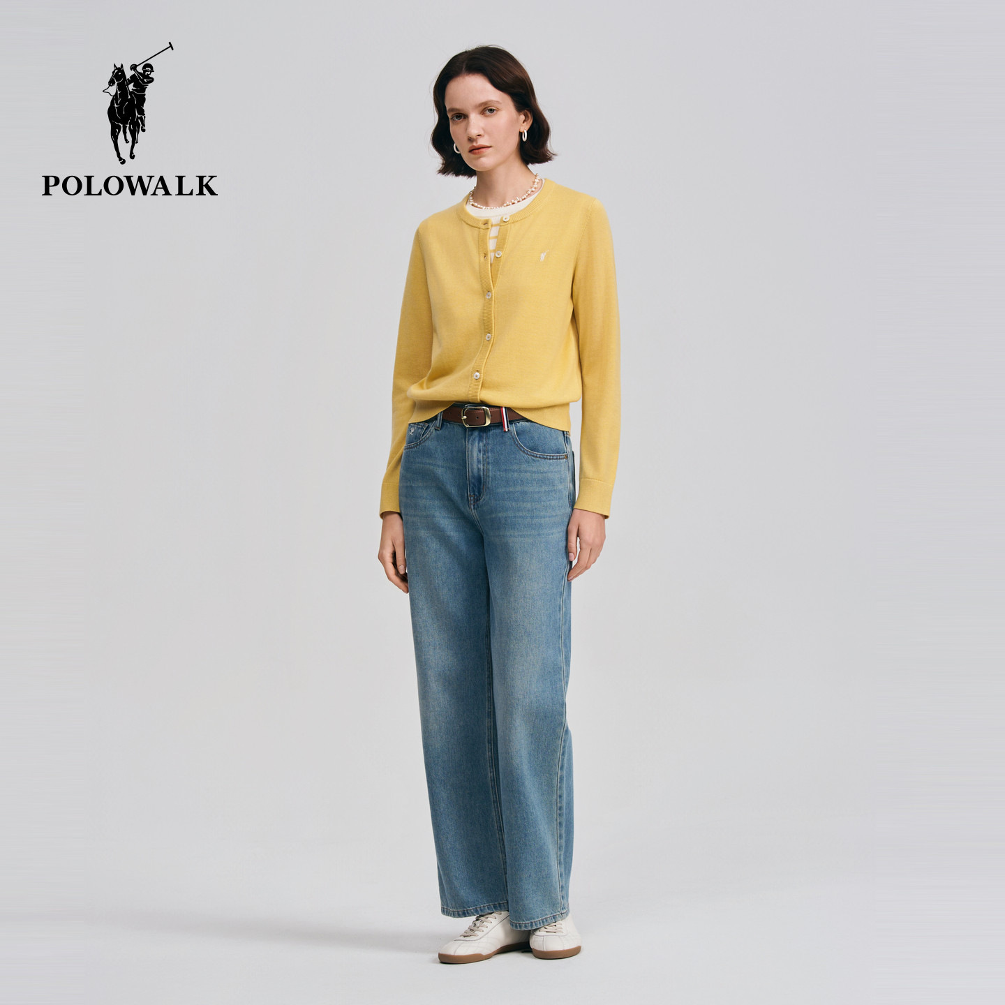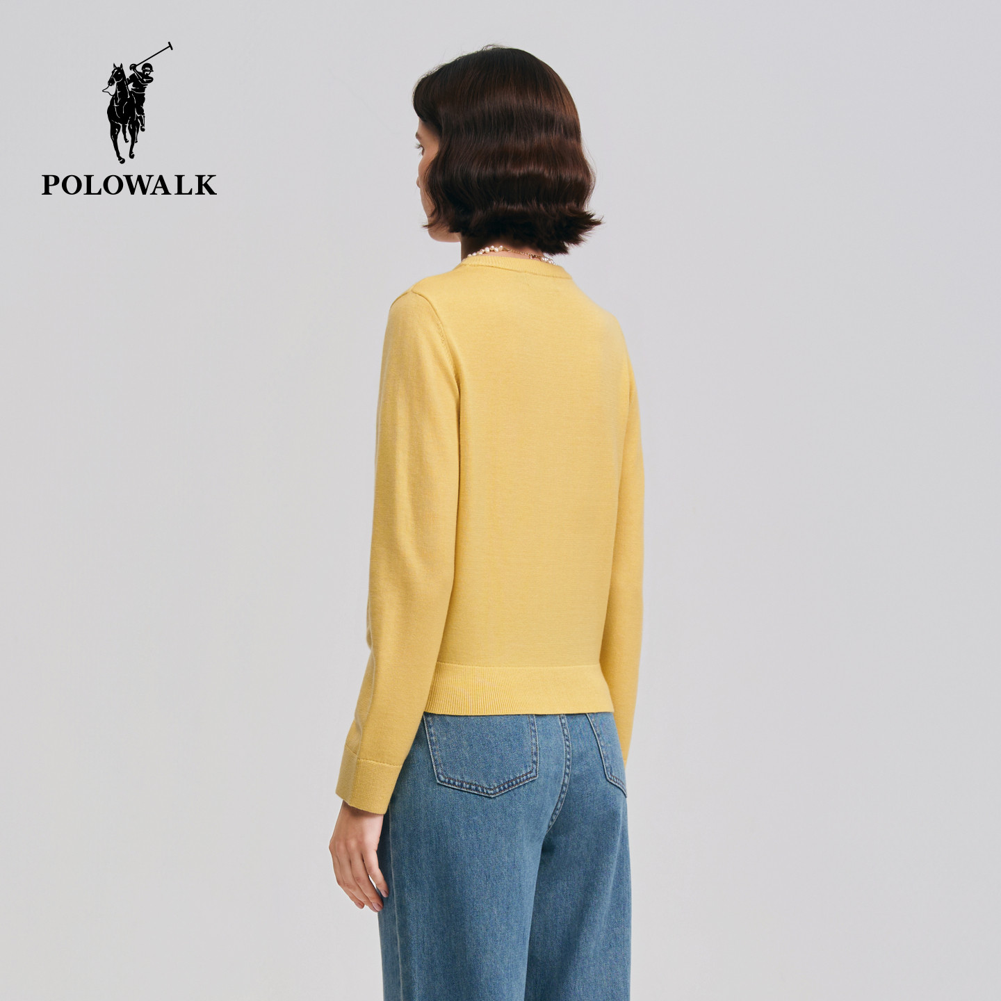 POLOWALK女装针织衫2026春季新款女士长袖针织衫假两件开衫圆领衫