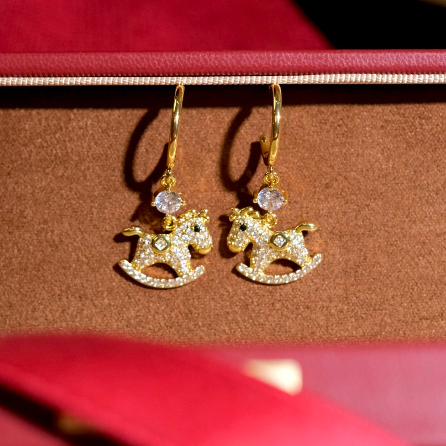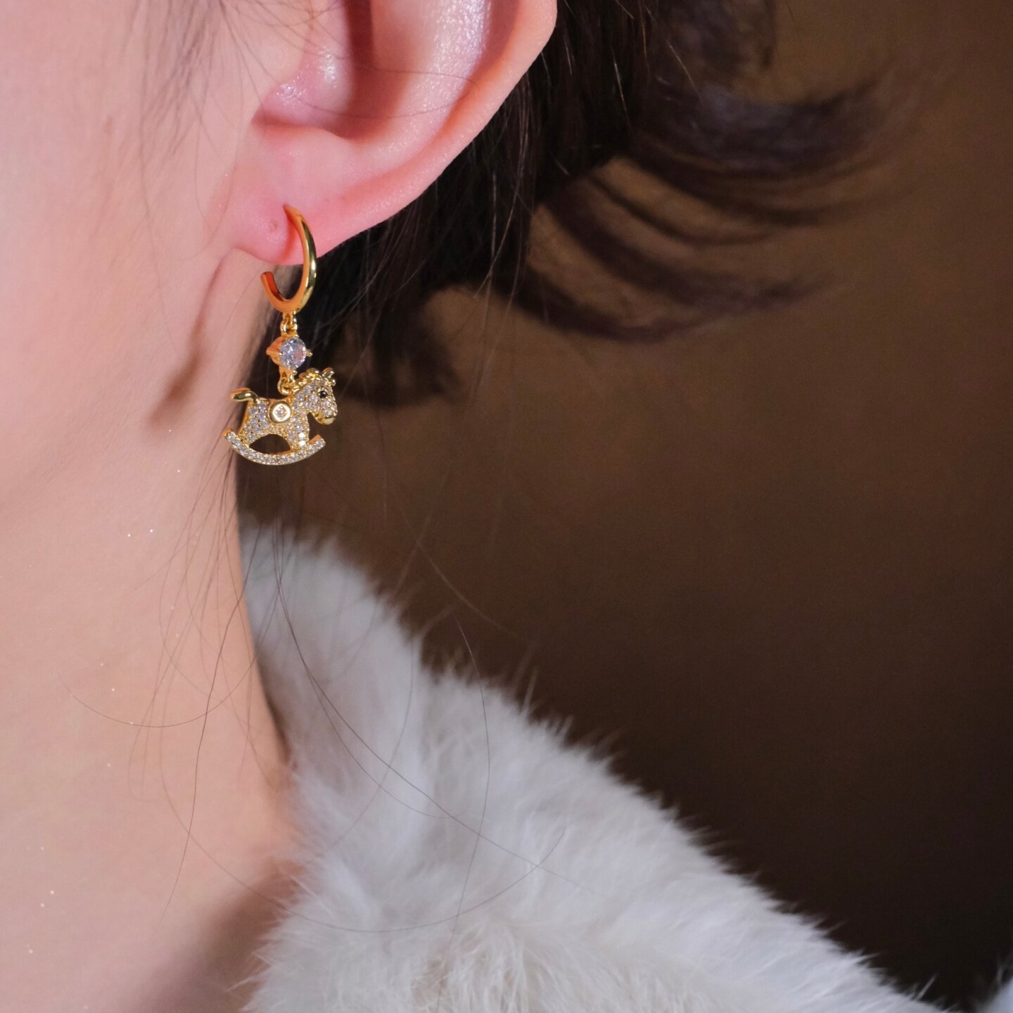 《铜钱小马》本命年新年精致国风轻奢木马金色耳钉耳夹耳饰耳环女