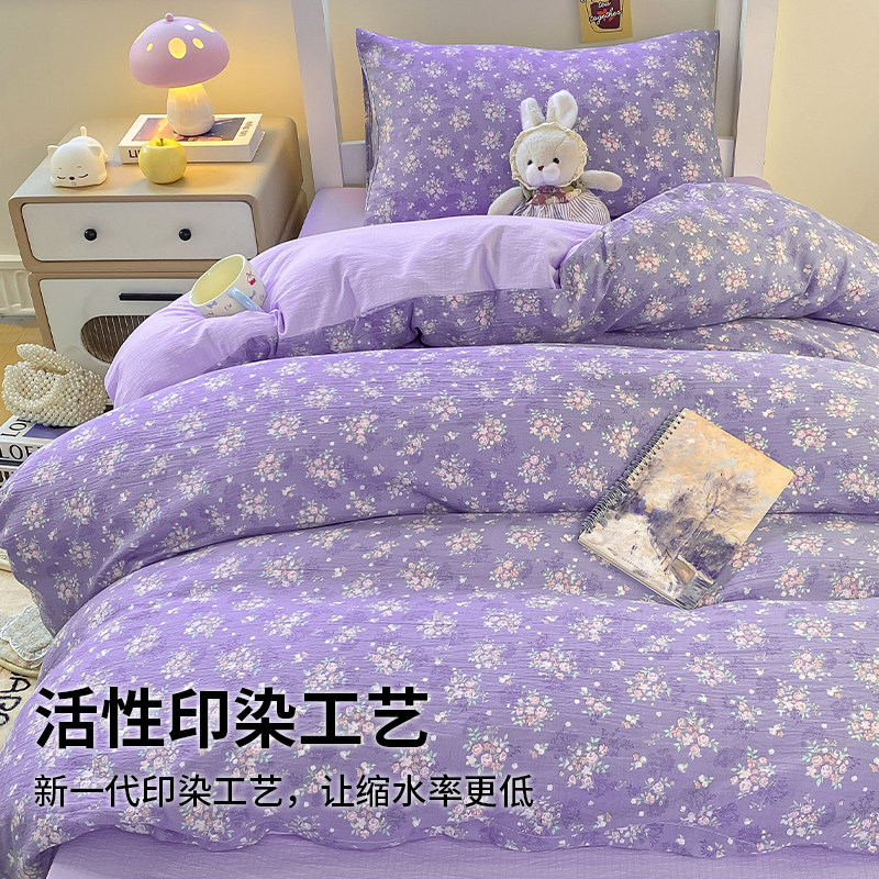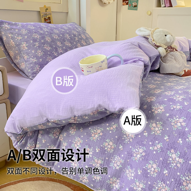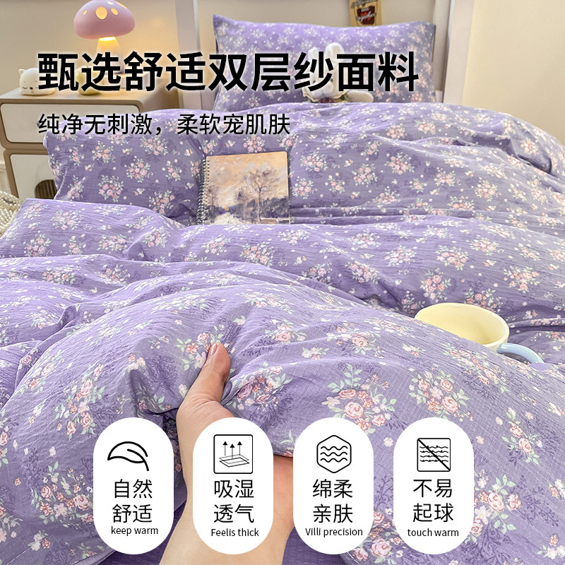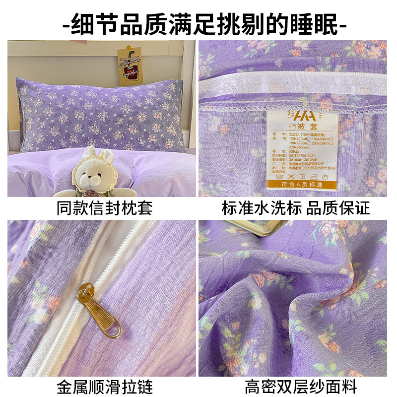 A类床品四件套非纯棉全棉床单被套被罩学生宿舍三件套床笠4双层纱
