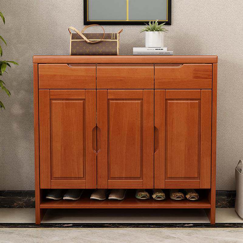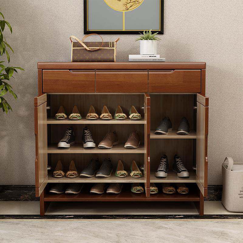 鞋柜实木家用多层大容量二门三门橡胶木门厅柜带抽屉客厅收纳柜