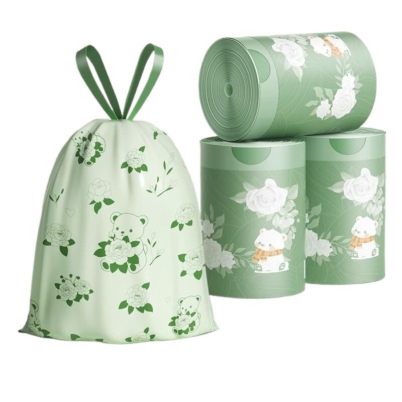 小熊印花垃圾袋家用加厚手提式大号免撕抽绳塑料袋厨房专用