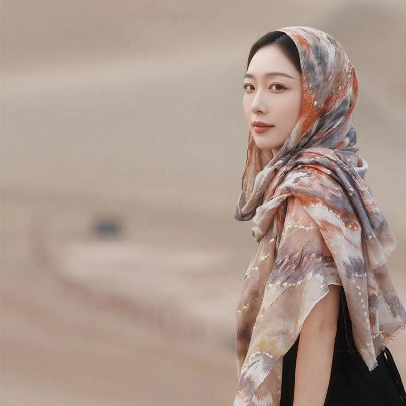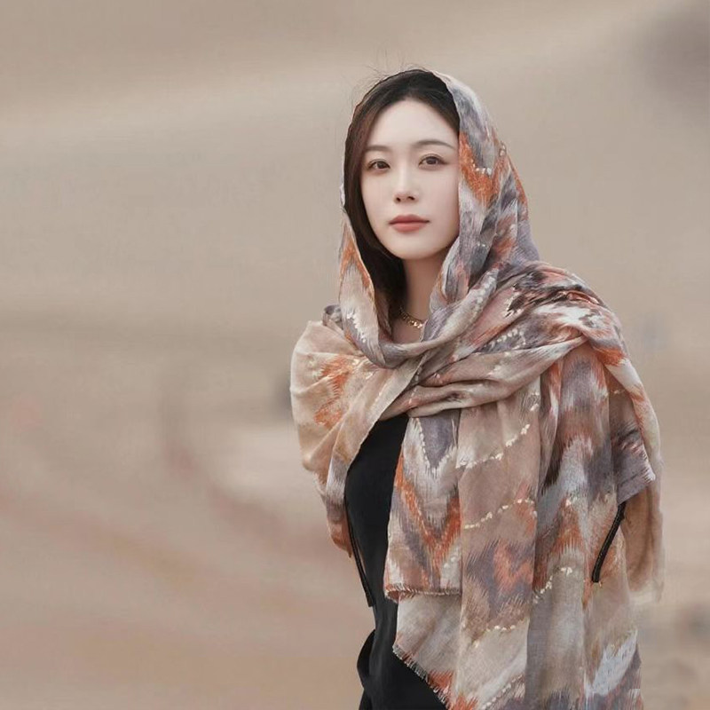 废旅游拍照防晒头巾沙漠大西北埃及敦煌棉麻丝巾披肩外搭围巾冬季