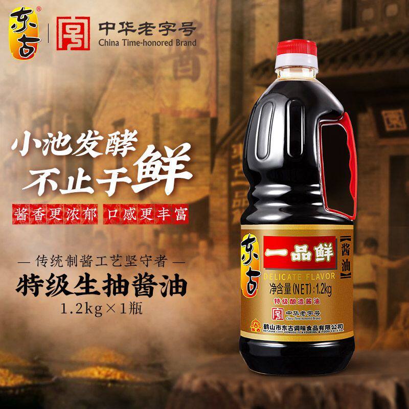东古一品鲜酱油1.2Kg特级酿造蒸鱼豉油家用调味品生抽黄豆老字号