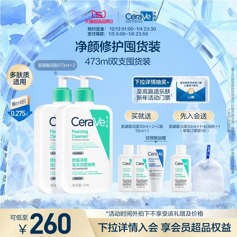 CeraVe适乐肤氨基酸洗面奶敏感肌洁面乳官方正品男女温和保湿屏障