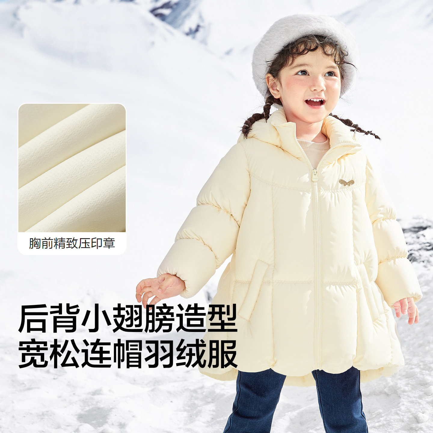 宽松连帽羽绒服,甜美可爱小翅膀造型