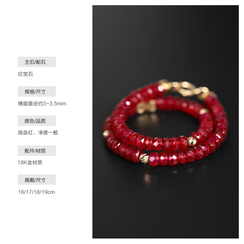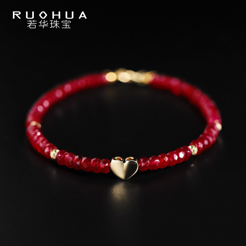 若华珠宝怦然心动 刻面鸽血红宝石手链女18K金彩宝手饰礼物定制