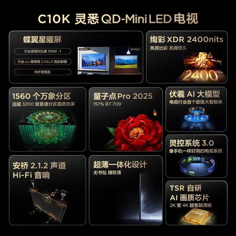 TCL 85C10K 85英寸 星耀屏 灵悉QD-MiniLED 画布屏 智能平板电视