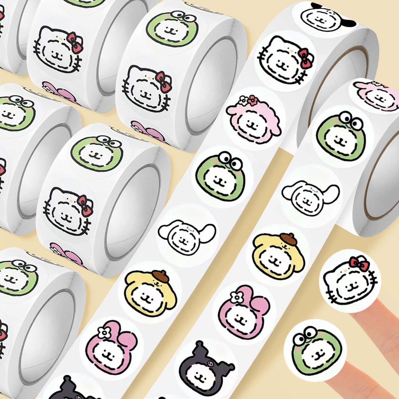 卡通线条小狗卷卷贴小学老师奖励贴学生手账装饰贴外卖包装封口贴